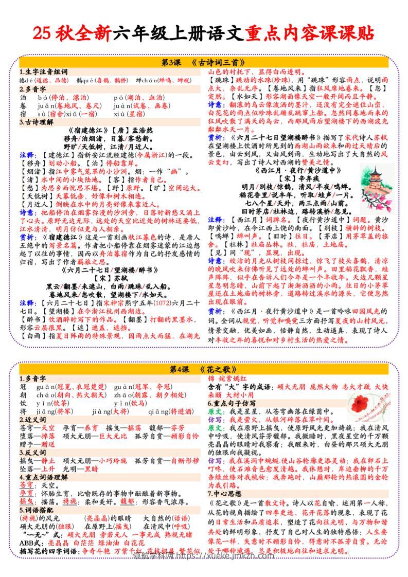 25秋全新六年级上册语文重点内容课课贴(18页)青禾老师1个月前发布关注私信033516 ——预览已结束,还剩16页未读——开通会员后可免费下载高清完整文档 25秋全新六年级上册语文重点内容课课贴(18页)此内容为付费资源,请付费后查看领航币4.9年度会员免费永久会员免费立即购买您当前未登录!建议登陆后购买,可保存购买订单格式pdf页数18 页大小20.40 MB付费资源© 版权声明 1 本网站名称:领航学科网 2 本站永久网址:https://xueke.jmkzh.com/ 3 本网站的资料都来源于用户投稿,仅供大家学习与参考,如有侵权,请联系站长QQ进行删除处理。 4 本站一切资源不代表本站立场,并不代表本站赞同其观点和对其真实性负责。 5 本站一律禁止以任何方式发布或转载任何违法的相关信息,访客发现请向站长举报! THE END小学语文 喜欢就支持一下吧点赞16 分享QQ空间微博QQ好友海报分享复制链接收藏
