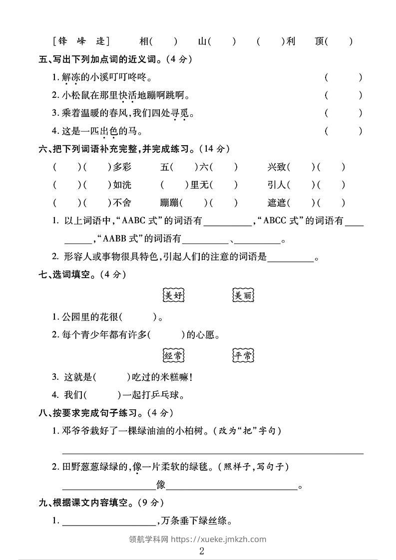 二年级下语文第一次月考综合卷两套青禾老师8个月前发布关注私信016641 ——预览已结束,还剩11页未读——开通会员后可免费下载高清完整文档 二年级下语文第一次月考综合卷两套此内容为付费资源,请付费后查看领航币4.9年度会员免费永久会员免费立即购买您当前未登录!建议登陆后购买,可保存购买订单格式pdf页数13 页大小4.01 MB付费资源© 版权声明 1 本网站名称:领航学科网 2 本站永久网址:https://xueke.jmkzh.com/ 3 本网站的资料都来源于用户投稿,仅供大家学习与参考,如有侵权,请联系站长QQ进行删除处理。 4 本站一切资源不代表本站立场,并不代表本站赞同其观点和对其真实性负责。 5 本站一律禁止以任何方式发布或转载任何违法的相关信息,访客发现请向站长举报! THE END小学语文 喜欢就支持一下吧点赞41 分享QQ空间微博QQ好友海报分享复制链接收藏