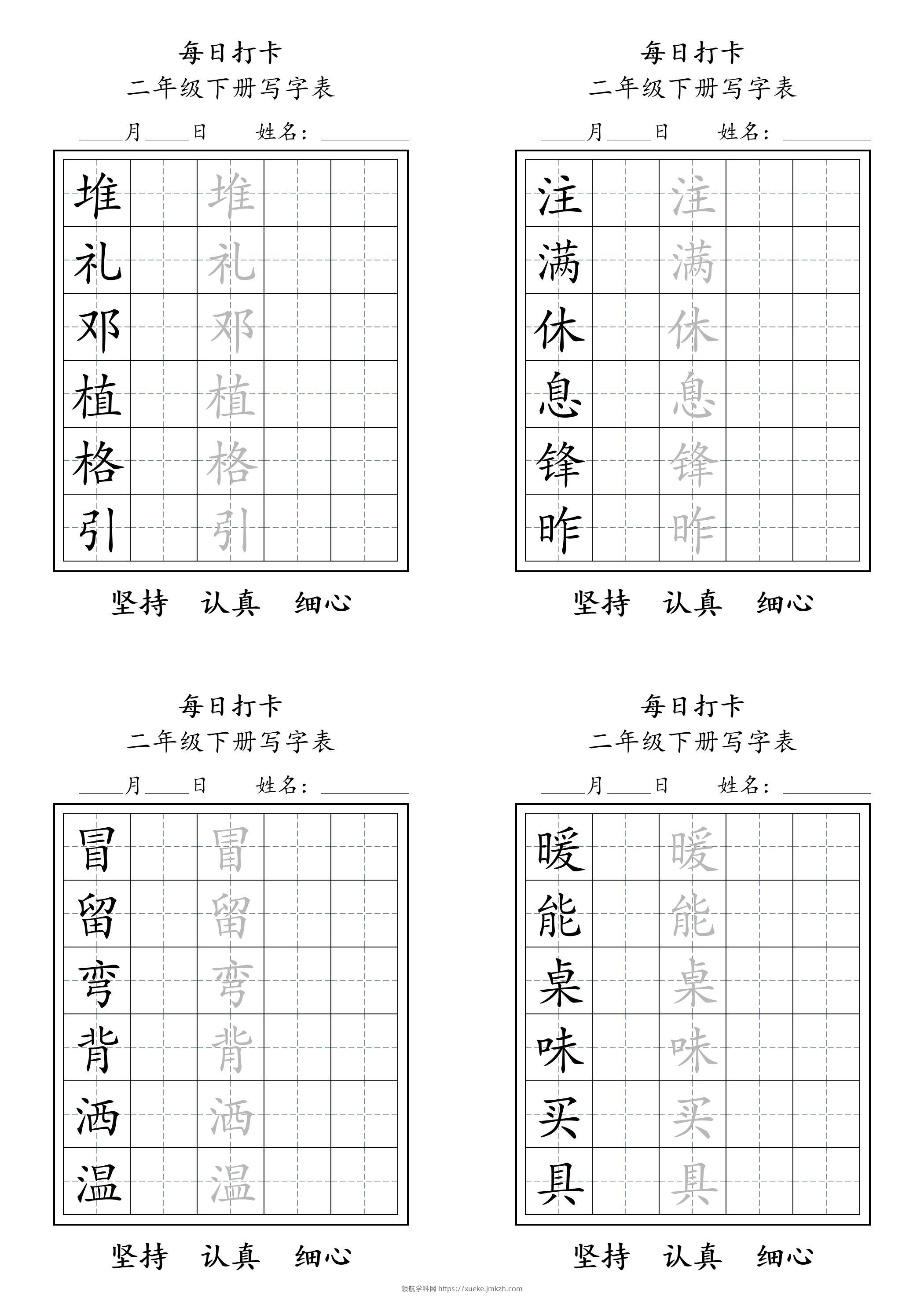 二年级语文下册写字表每日打卡练字11页青禾老师8个月前发布关注私信08721 ——预览已结束,还剩9页未读——开通会员后可免费下载高清完整文档 二年级语文下册写字表每日打卡练字11页此内容为付费资源,请付费后查看领航币4.9年度会员免费永久会员免费立即购买您当前未登录!建议登陆后购买,可保存购买订单格式pdf页数11 页大小194.77 KB付费资源© 版权声明 1 本网站名称:领航学科网 2 本站永久网址:https://xueke.jmkzh.com/ 3 本网站的资料都来源于用户投稿,仅供大家学习与参考,如有侵权,请联系站长QQ进行删除处理。 4 本站一切资源不代表本站立场,并不代表本站赞同其观点和对其真实性负责。 5 本站一律禁止以任何方式发布或转载任何违法的相关信息,访客发现请向站长举报! THE END小学语文 喜欢就支持一下吧点赞21 分享QQ空间微博QQ好友海报分享复制链接收藏