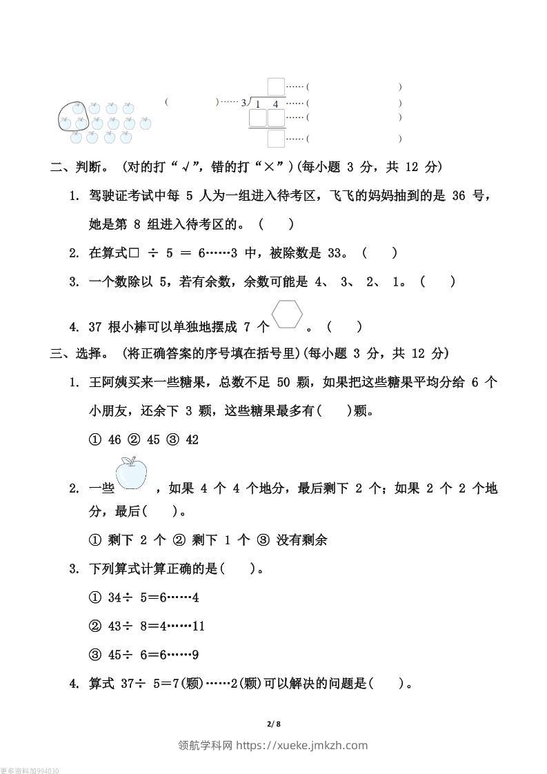 【精选】青岛63版二年级下册数学第一单元《有余数的除法》测试卷(含答案)青禾老师1年前发布关注私信044220 ——预览已结束,还剩6页未读——开通会员后可免费下载高清完整文档 【精选】青岛63版二年级下册数学第一单元《有余数的除法》测试卷(含答案)此内容为付费资源,请付费后查看领航币4.9年度会员免费永久会员免费立即购买您当前未登录!建议登陆后购买,可保存购买订单格式pdf页数8 页大小556.32 KB付费资源© 版权声明 1 本网站名称:领航学科网 2 本站永久网址:https://xueke.jmkzh.com/ 3 本网站的资料都来源于用户投稿,仅供大家学习与参考,如有侵权,请联系站长QQ进行删除处理。 4 本站一切资源不代表本站立场,并不代表本站赞同其观点和对其真实性负责。 5 本站一律禁止以任何方式发布或转载任何违法的相关信息,访客发现请向站长举报! THE END小学数学 喜欢就支持一下吧点赞20 分享QQ空间微博QQ好友海报分享复制链接收藏