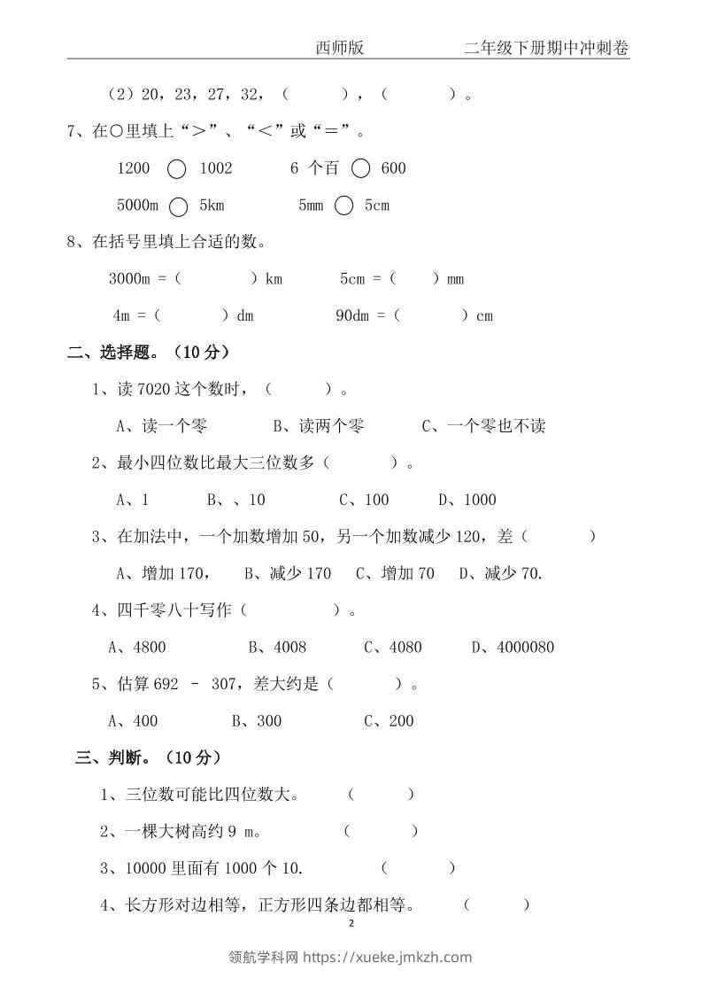 【西师版】二年级数学下册期中冲刺卷三套(含答案17页)青禾老师6个月前发布关注私信063551 ——预览已结束,还剩15页未读——开通会员后可免费下载高清完整文档 【西师版】二年级数学下册期中冲刺卷三套(含答案17页)此内容为付费资源,请付费后查看领航币4.9年度会员免费永久会员免费立即购买您当前未登录!建议登陆后购买,可保存购买订单格式pdf页数17 页大小323.07 KB付费资源© 版权声明 1 本网站名称:领航学科网 2 本站永久网址:https://xueke.jmkzh.com/ 3 本网站的资料都来源于用户投稿,仅供大家学习与参考,如有侵权,请联系站长QQ进行删除处理。 4 本站一切资源不代表本站立场,并不代表本站赞同其观点和对其真实性负责。 5 本站一律禁止以任何方式发布或转载任何违法的相关信息,访客发现请向站长举报! THE END小学数学 喜欢就支持一下吧点赞51 分享QQ空间微博QQ好友海报分享复制链接收藏