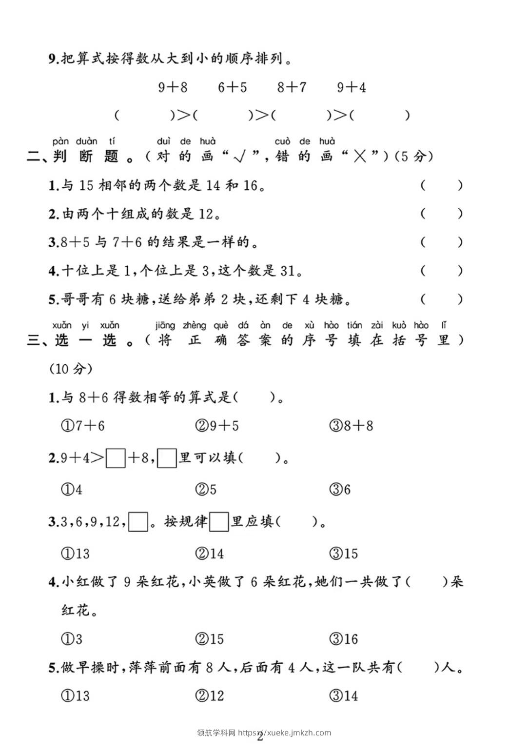 25春一下北师大版数学第一单元《20以内数与加法》测试卷青禾老师1年前发布关注私信016337 ——预览已结束,还剩2页未读——开通会员后可免费下载高清完整文档 25春一下北师大版数学第一单元《20以内数与加法》测试卷此内容为付费资源,请付费后查看领航币4.9年度会员免费永久会员免费立即购买您当前未登录!建议登陆后购买,可保存购买订单格式pdf页数4 页大小627.32 KB付费资源© 版权声明 1 本网站名称:领航学科网 2 本站永久网址:https://xueke.jmkzh.com/ 3 本网站的资料都来源于用户投稿,仅供大家学习与参考,如有侵权,请联系站长QQ进行删除处理。 4 本站一切资源不代表本站立场,并不代表本站赞同其观点和对其真实性负责。 5 本站一律禁止以任何方式发布或转载任何违法的相关信息,访客发现请向站长举报! THE END小学数学 喜欢就支持一下吧点赞37 分享QQ空间微博QQ好友海报分享复制链接收藏