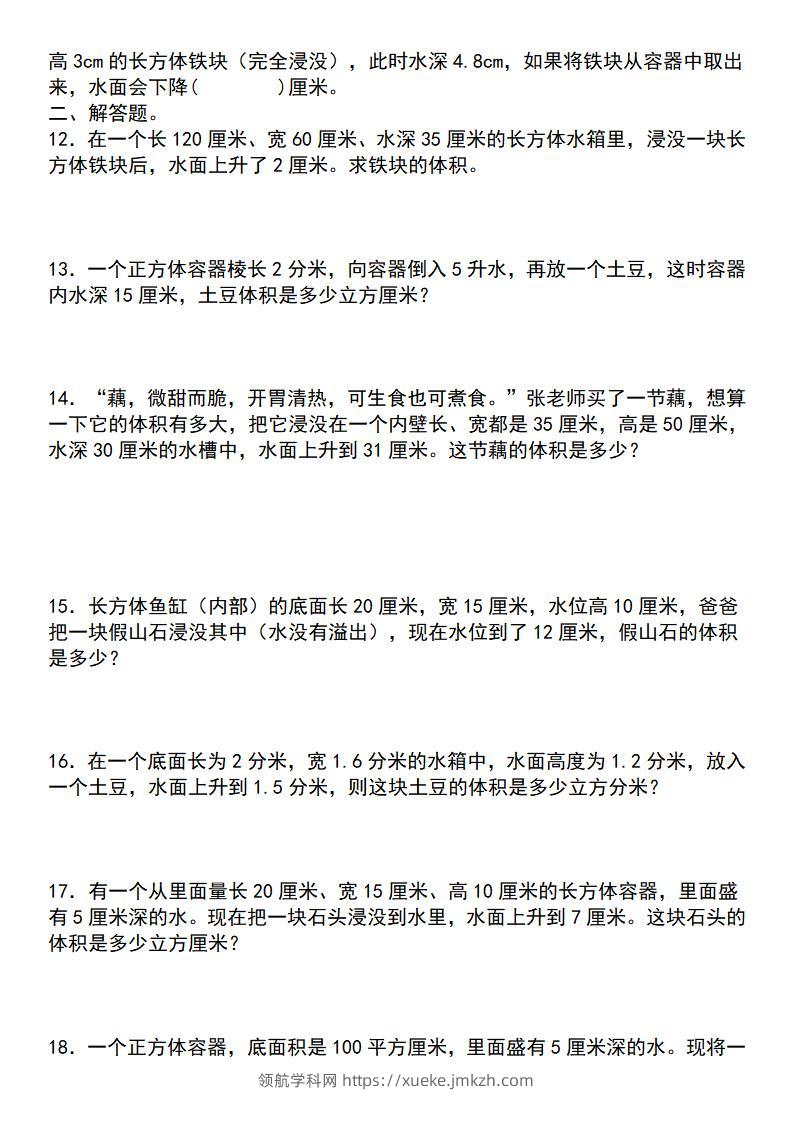 【通用版】五年级下册数学典型例题与相关拓展(3-2排水法求不规则物体的体积“一般问题”)青禾老师5个月前发布关注私信017984 ——预览已结束,还剩9页未读——开通会员后可免费下载高清完整文档 【通用版】五年级下册数学典型例题与相关拓展(3-2排水法求不规则物体的体积“一般问题”)此内容为付费资源,请付费后查看领航币4.9年度会员免费永久会员免费立即购买您当前未登录!建议登陆后购买,可保存购买订单格式pdf页数11 页大小764.36 KB付费资源© 版权声明 1 本网站名称:领航学科网 2 本站永久网址:https://xueke.jmkzh.com/ 3 本网站的资料都来源于用户投稿,仅供大家学习与参考,如有侵权,请联系站长QQ进行删除处理。 4 本站一切资源不代表本站立场,并不代表本站赞同其观点和对其真实性负责。 5 本站一律禁止以任何方式发布或转载任何违法的相关信息,访客发现请向站长举报! THE END小学数学 喜欢就支持一下吧点赞84 分享QQ空间微博QQ好友海报分享复制链接收藏