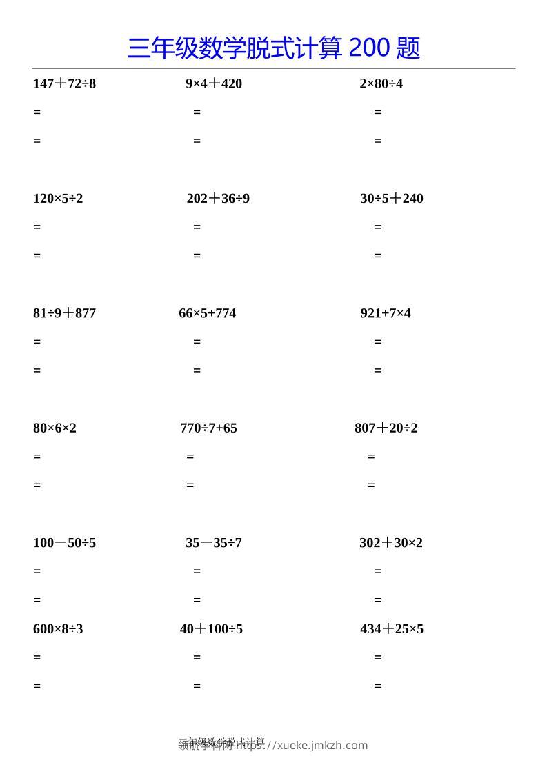 三下数学【脱式计算200题】青禾老师1年前发布关注私信09278 ——预览已结束,还剩10页未读——开通会员后可免费下载高清完整文档 三下数学【脱式计算200题】此内容为付费资源,请付费后查看领航币4.9年度会员免费永久会员免费立即购买您当前未登录!建议登陆后购买,可保存购买订单格式pdf页数12 页大小288.53 KB付费资源© 版权声明 1 本网站名称:领航学科网 2 本站永久网址:https://xueke.jmkzh.com/ 3 本网站的资料都来源于用户投稿,仅供大家学习与参考,如有侵权,请联系站长QQ进行删除处理。 4 本站一切资源不代表本站立场,并不代表本站赞同其观点和对其真实性负责。 5 本站一律禁止以任何方式发布或转载任何违法的相关信息,访客发现请向站长举报! THE END小学数学 喜欢就支持一下吧点赞78 分享QQ空间微博QQ好友海报分享复制链接收藏