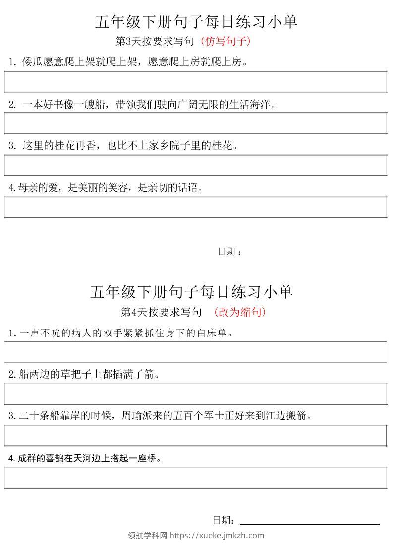 五年级下册语文句子每日练习小单青禾老师1年前发布关注私信0702105 ——预览已结束,还剩9页未读——开通会员后可免费下载高清完整文档 五年级下册语文句子每日练习小单此内容为付费资源,请付费后查看领航币4.9年度会员免费永久会员免费立即购买您当前未登录!建议登陆后购买,可保存购买订单格式pdf页数11 页大小1.78 MB付费资源© 版权声明 1 本网站名称:领航学科网 2 本站永久网址:https://xueke.jmkzh.com/ 3 本网站的资料都来源于用户投稿,仅供大家学习与参考,如有侵权,请联系站长QQ进行删除处理。 4 本站一切资源不代表本站立场,并不代表本站赞同其观点和对其真实性负责。 5 本站一律禁止以任何方式发布或转载任何违法的相关信息,访客发现请向站长举报! THE END小学语文 喜欢就支持一下吧点赞105 分享QQ空间微博QQ好友海报分享复制链接收藏