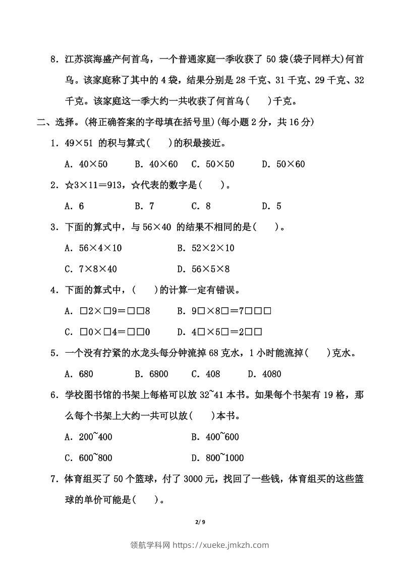 苏教版三年级下册数学第一单元《两位数乘两位数》测试卷(含答案)青禾老师1年前发布关注私信0973105 ——预览已结束,还剩7页未读——开通会员后可免费下载高清完整文档 苏教版三年级下册数学第一单元《两位数乘两位数》测试卷(含答案)此内容为付费资源,请付费后查看领航币4.9年度会员免费永久会员免费立即购买您当前未登录!建议登陆后购买,可保存购买订单格式pdf页数9 页大小824.11 KB付费资源© 版权声明 1 本网站名称:领航学科网 2 本站永久网址:https://xueke.jmkzh.com/ 3 本网站的资料都来源于用户投稿,仅供大家学习与参考,如有侵权,请联系站长QQ进行删除处理。 4 本站一切资源不代表本站立场,并不代表本站赞同其观点和对其真实性负责。 5 本站一律禁止以任何方式发布或转载任何违法的相关信息,访客发现请向站长举报! THE END小学数学 喜欢就支持一下吧点赞105 分享QQ空间微博QQ好友海报分享复制链接收藏