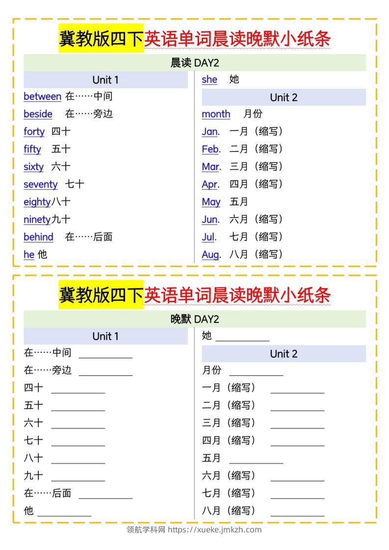 四下英语冀教单词晨读晚默小纸条青禾老师1年前发布关注私信015478 ——预览已结束,还剩2页未读——开通会员后可免费下载高清完整文档 四下英语冀教单词晨读晚默小纸条此内容为付费资源,请付费后查看领航币4.9年度会员免费永久会员免费立即购买您当前未登录!建议登陆后购买,可保存购买订单格式pdf页数4 页大小3.74 MB付费资源© 版权声明 1 本网站名称:领航学科网 2 本站永久网址:https://xueke.jmkzh.com/ 3 本网站的资料都来源于用户投稿,仅供大家学习与参考,如有侵权,请联系站长QQ进行删除处理。 4 本站一切资源不代表本站立场,并不代表本站赞同其观点和对其真实性负责。 5 本站一律禁止以任何方式发布或转载任何违法的相关信息,访客发现请向站长举报! THE END小学英语 喜欢就支持一下吧点赞78 分享QQ空间微博QQ好友海报分享复制链接收藏