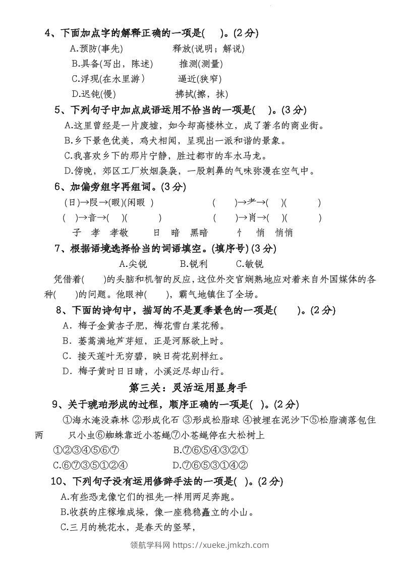 四下语文【第1次月考试卷】青禾老师1年前发布关注私信026387 ——预览已结束,还剩6页未读——开通会员后可免费下载高清完整文档 四下语文【第1次月考试卷】此内容为付费资源,请付费后查看领航币4.9年度会员免费永久会员免费立即购买您当前未登录!建议登陆后购买,可保存购买订单格式pdf页数8 页大小667.04 KB付费资源© 版权声明 1 本网站名称:领航学科网 2 本站永久网址:https://xueke.jmkzh.com/ 3 本网站的资料都来源于用户投稿,仅供大家学习与参考,如有侵权,请联系站长QQ进行删除处理。 4 本站一切资源不代表本站立场,并不代表本站赞同其观点和对其真实性负责。 5 本站一律禁止以任何方式发布或转载任何违法的相关信息,访客发现请向站长举报! THE END小学语文 喜欢就支持一下吧点赞87 分享QQ空间微博QQ好友海报分享复制链接收藏