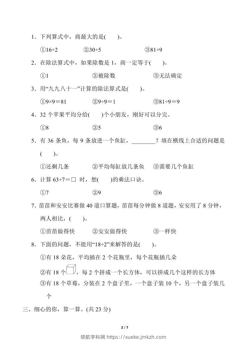 人教版二年级下册数学第四单元《表内除法(二)》测试卷(含答案)青禾老师5个月前发布关注私信076018 ——预览已结束,还剩5页未读——开通会员后可免费下载高清完整文档 人教版二年级下册数学第四单元《表内除法(二)》测试卷(含答案)此内容为付费资源,请付费后查看领航币4.9年度会员免费永久会员免费立即购买您当前未登录!建议登陆后购买,可保存购买订单格式pdf页数7 页大小1.37 MB付费资源© 版权声明 1 本网站名称:领航学科网 2 本站永久网址:https://xueke.jmkzh.com/ 3 本网站的资料都来源于用户投稿,仅供大家学习与参考,如有侵权,请联系站长QQ进行删除处理。 4 本站一切资源不代表本站立场,并不代表本站赞同其观点和对其真实性负责。 5 本站一律禁止以任何方式发布或转载任何违法的相关信息,访客发现请向站长举报! THE END小学数学 喜欢就支持一下吧点赞18 分享QQ空间微博QQ好友海报分享复制链接收藏