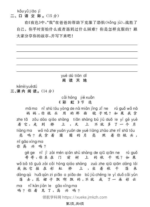 一年级下册语文第四单元综合测试B卷青禾老师5个月前发布关注私信065769 ——预览已结束,还剩2页未读——开通会员后可免费下载高清完整文档 一年级下册语文第四单元综合测试B卷此内容为付费资源,请付费后查看领航币4.9年度会员免费永久会员免费立即购买您当前未登录!建议登陆后购买,可保存购买订单格式pdf页数4 页大小3.44 MB付费资源© 版权声明 1 本网站名称:领航学科网 2 本站永久网址:https://xueke.jmkzh.com/ 3 本网站的资料都来源于用户投稿,仅供大家学习与参考,如有侵权,请联系站长QQ进行删除处理。 4 本站一切资源不代表本站立场,并不代表本站赞同其观点和对其真实性负责。 5 本站一律禁止以任何方式发布或转载任何违法的相关信息,访客发现请向站长举报! THE END小学语文 喜欢就支持一下吧点赞69 分享QQ空间微博QQ好友海报分享复制链接收藏