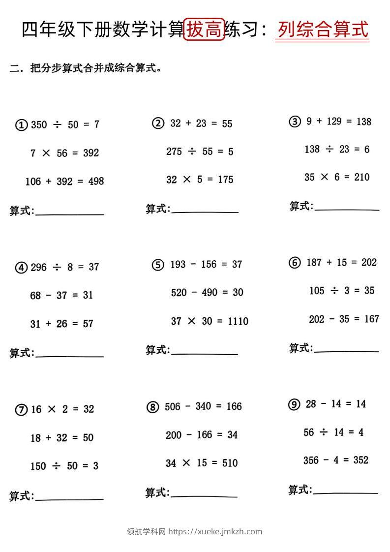 四下《数学计算拔高练习列综合算式(树状图)》青禾老师12个月前发布关注私信029521 ——预览已结束,还剩3页未读——开通会员后可免费下载高清完整文档 四下《数学计算拔高练习列综合算式(树状图)》此内容为付费资源,请付费后查看领航币4.9年度会员免费永久会员免费立即购买您当前未登录!建议登陆后购买,可保存购买订单格式pdf页数5 页大小2.09 MB付费资源© 版权声明 1 本网站名称:领航学科网 2 本站永久网址:https://xueke.jmkzh.com/ 3 本网站的资料都来源于用户投稿,仅供大家学习与参考,如有侵权,请联系站长QQ进行删除处理。 4 本站一切资源不代表本站立场,并不代表本站赞同其观点和对其真实性负责。 5 本站一律禁止以任何方式发布或转载任何违法的相关信息,访客发现请向站长举报! THE END小学数学 喜欢就支持一下吧点赞21 分享QQ空间微博QQ好友海报分享复制链接收藏