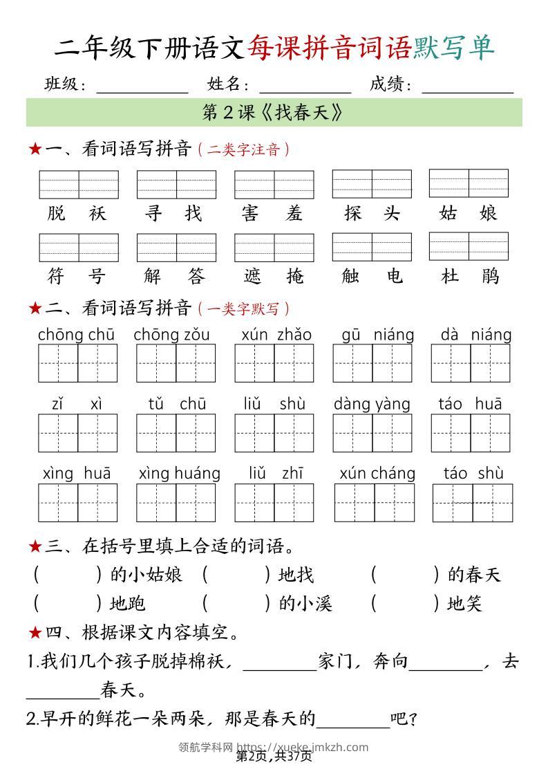二下语文每课拼音词语默写单(完整37页)青禾老师5个月前发布关注私信018849 ——预览已结束,还剩35页未读——开通会员后可免费下载高清完整文档 二下语文每课拼音词语默写单(完整37页)此内容为付费资源,请付费后查看领航币4.9年度会员免费永久会员免费立即购买您当前未登录!建议登陆后购买,可保存购买订单格式pdf页数37 页大小3.14 MB付费资源© 版权声明 1 本网站名称:领航学科网 2 本站永久网址:https://xueke.jmkzh.com/ 3 本网站的资料都来源于用户投稿,仅供大家学习与参考,如有侵权,请联系站长QQ进行删除处理。 4 本站一切资源不代表本站立场,并不代表本站赞同其观点和对其真实性负责。 5 本站一律禁止以任何方式发布或转载任何违法的相关信息,访客发现请向站长举报! THE END小学语文 喜欢就支持一下吧点赞49 分享QQ空间微博QQ好友海报分享复制链接收藏