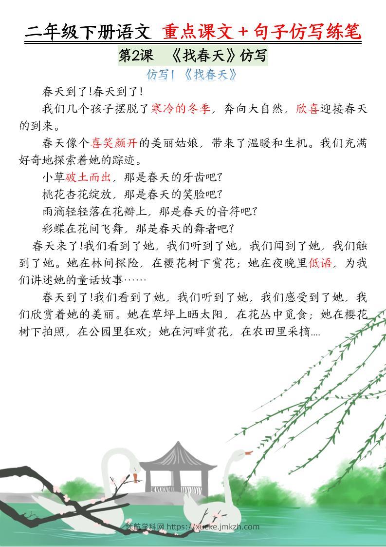 二下语文重点课文+句子仿写练笔(50页)青禾老师5个月前发布关注私信02367 ——预览已结束,还剩48页未读——开通会员后可免费下载高清完整文档 二下语文重点课文+句子仿写练笔(50页)此内容为付费资源,请付费后查看领航币4.9年度会员免费永久会员免费立即购买您当前未登录!建议登陆后购买,可保存购买订单格式pdf页数50 页大小3.05 MB付费资源© 版权声明 1 本网站名称:领航学科网 2 本站永久网址:https://xueke.jmkzh.com/ 3 本网站的资料都来源于用户投稿,仅供大家学习与参考,如有侵权,请联系站长QQ进行删除处理。 4 本站一切资源不代表本站立场,并不代表本站赞同其观点和对其真实性负责。 5 本站一律禁止以任何方式发布或转载任何违法的相关信息,访客发现请向站长举报! THE END小学语文 喜欢就支持一下吧点赞67 分享QQ空间微博QQ好友海报分享复制链接收藏
