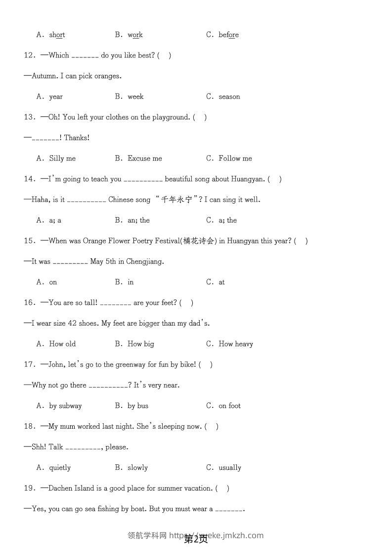 六年级下英语选择题100题(含答案)青禾老师5个月前发布关注私信057173 ——预览已结束,还剩15页未读——开通会员后可免费下载高清完整文档 六年级下英语选择题100题(含答案)此内容为付费资源,请付费后查看领航币4.9年度会员免费永久会员免费立即购买您当前未登录!建议登陆后购买,可保存购买订单格式pdf页数17 页大小468.91 KB付费资源© 版权声明 1 本网站名称:领航学科网 2 本站永久网址:https://xueke.jmkzh.com/ 3 本网站的资料都来源于用户投稿,仅供大家学习与参考,如有侵权,请联系站长QQ进行删除处理。 4 本站一切资源不代表本站立场,并不代表本站赞同其观点和对其真实性负责。 5 本站一律禁止以任何方式发布或转载任何违法的相关信息,访客发现请向站长举报! THE END小学英语 喜欢就支持一下吧点赞73 分享QQ空间微博QQ好友海报分享复制链接收藏