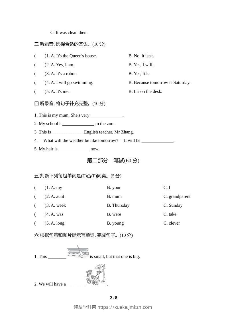 外研版2024-2025学年英语四年级下册第二学期期中考试(A)卷青禾老师12个月前发布关注私信010737 ——预览已结束,还剩6页未读——开通会员后可免费下载高清完整文档 外研版2024-2025学年英语四年级下册第二学期期中考试(A)卷此内容为付费资源,请付费后查看领航币4.9年度会员免费永久会员免费立即购买您当前未登录!建议登陆后购买,可保存购买订单格式doc页数8 页大小3.06 MB付费资源© 版权声明 1 本网站名称:领航学科网 2 本站永久网址:https://xueke.jmkzh.com/ 3 本网站的资料都来源于用户投稿,仅供大家学习与参考,如有侵权,请联系站长QQ进行删除处理。 4 本站一切资源不代表本站立场,并不代表本站赞同其观点和对其真实性负责。 5 本站一律禁止以任何方式发布或转载任何违法的相关信息,访客发现请向站长举报! THE END小学英语 喜欢就支持一下吧点赞37 分享QQ空间微博QQ好友海报分享复制链接收藏