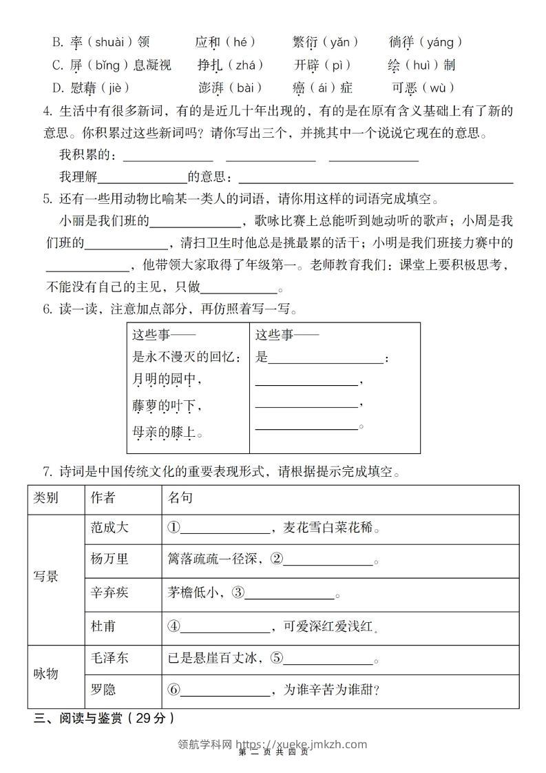 2024-2025学年第二学期四年级语文期中测试卷青禾老师5个月前发布关注私信065628 ——预览已结束,还剩2页未读——开通会员后可免费下载高清完整文档 2024-2025学年第二学期四年级语文期中测试卷此内容为付费资源,请付费后查看领航币4.9年度会员免费永久会员免费立即购买您当前未登录!建议登陆后购买,可保存购买订单格式pdf页数4 页大小2.79 MB付费资源© 版权声明 1 本网站名称:领航学科网 2 本站永久网址:https://xueke.jmkzh.com/ 3 本网站的资料都来源于用户投稿,仅供大家学习与参考,如有侵权,请联系站长QQ进行删除处理。 4 本站一切资源不代表本站立场,并不代表本站赞同其观点和对其真实性负责。 5 本站一律禁止以任何方式发布或转载任何违法的相关信息,访客发现请向站长举报! THE END小学语文 喜欢就支持一下吧点赞28 分享QQ空间微博QQ好友海报分享复制链接收藏