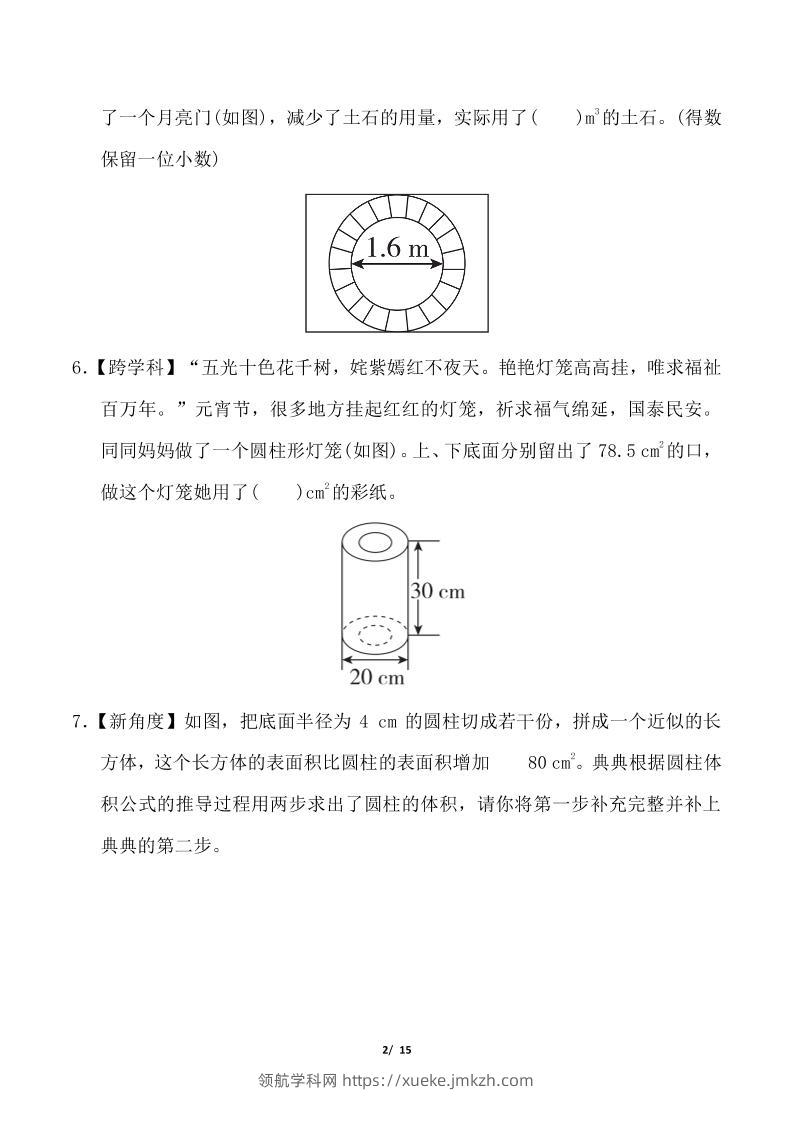人教版六年级下册数学第三单元《圆柱与圆锥》测试卷(含答案)青禾老师12个月前发布关注私信042659 ——预览已结束,还剩13页未读——开通会员后可免费下载高清完整文档 人教版六年级下册数学第三单元《圆柱与圆锥》测试卷(含答案)此内容为付费资源,请付费后查看领航币4.9年度会员免费永久会员免费立即购买您当前未登录!建议登陆后购买,可保存购买订单格式pdf页数15 页大小818.45 KB付费资源© 版权声明 1 本网站名称:领航学科网 2 本站永久网址:https://xueke.jmkzh.com/ 3 本网站的资料都来源于用户投稿,仅供大家学习与参考,如有侵权,请联系站长QQ进行删除处理。 4 本站一切资源不代表本站立场,并不代表本站赞同其观点和对其真实性负责。 5 本站一律禁止以任何方式发布或转载任何违法的相关信息,访客发现请向站长举报! THE END小学数学 喜欢就支持一下吧点赞59 分享QQ空间微博QQ好友海报分享复制链接收藏