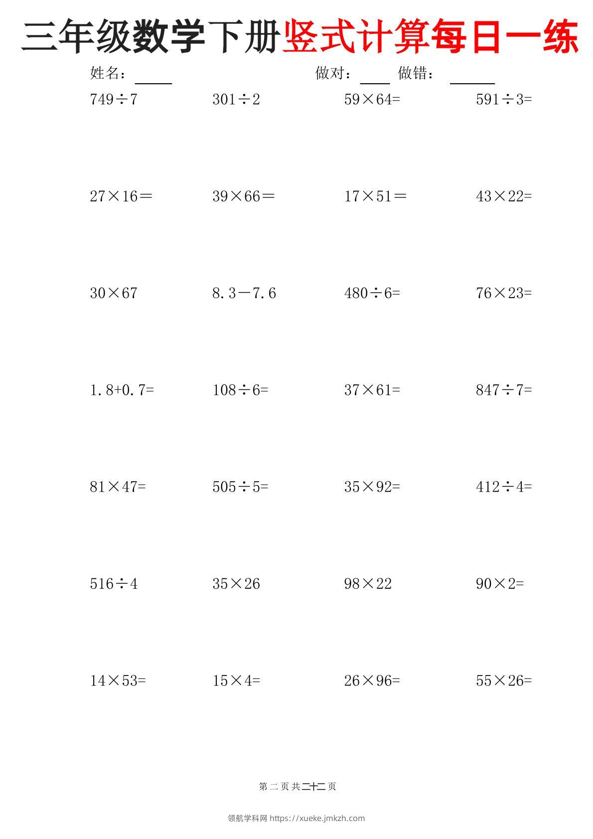 三下数学竖式计算每日一练-pdf三下数学竖式计算每日一练青禾老师5个月前发布关注私信026911 ——预览已结束,还剩20页未读——开通会员后可免费下载高清完整文档 三下数学竖式计算每日一练-pdf三下数学竖式计算每日一练此内容为付费资源,请付费后查看领航币4.9年度会员免费永久会员免费立即购买您当前未登录!建议登陆后购买,可保存购买订单格式pdf页数22 页大小669.03 KB付费资源© 版权声明 1 本网站名称:领航学科网 2 本站永久网址:https://xueke.jmkzh.com/ 3 本网站的资料都来源于用户投稿,仅供大家学习与参考,如有侵权,请联系站长QQ进行删除处理。 4 本站一切资源不代表本站立场,并不代表本站赞同其观点和对其真实性负责。 5 本站一律禁止以任何方式发布或转载任何违法的相关信息,访客发现请向站长举报! THE END小学数学 喜欢就支持一下吧点赞11 分享QQ空间微博QQ好友海报分享复制链接收藏