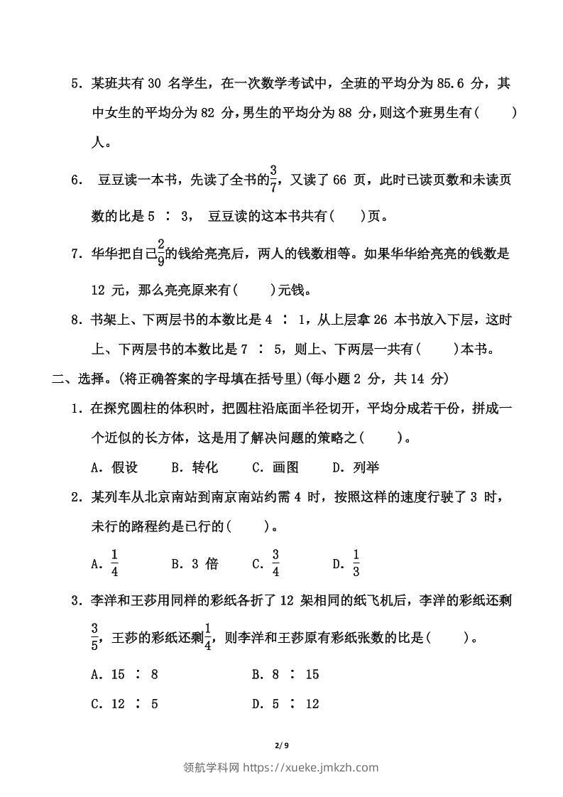 苏教版六年级下册数学第三单元《解决问题的策略》测试卷(含答案)青禾老师5个月前发布关注私信069746 ——预览已结束,还剩7页未读——开通会员后可免费下载高清完整文档 苏教版六年级下册数学第三单元《解决问题的策略》测试卷(含答案)此内容为付费资源,请付费后查看领航币4.9年度会员免费永久会员免费立即购买您当前未登录!建议登陆后购买,可保存购买订单格式pdf页数9 页大小551.14 KB付费资源© 版权声明 1 本网站名称:领航学科网 2 本站永久网址:https://xueke.jmkzh.com/ 3 本网站的资料都来源于用户投稿,仅供大家学习与参考,如有侵权,请联系站长QQ进行删除处理。 4 本站一切资源不代表本站立场,并不代表本站赞同其观点和对其真实性负责。 5 本站一律禁止以任何方式发布或转载任何违法的相关信息,访客发现请向站长举报! THE END小学数学 喜欢就支持一下吧点赞46 分享QQ空间微博QQ好友海报分享复制链接收藏