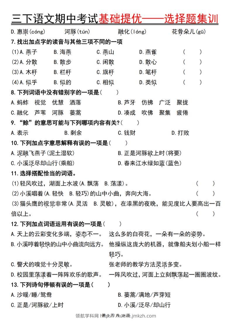 三下语文期中考试基础提优——选择题集训空白青禾老师5个月前发布关注私信08615 ——预览已结束,还剩17页未读——开通会员后可免费下载高清完整文档 三下语文期中考试基础提优——选择题集训空白此内容为付费资源,请付费后查看领航币4.9年度会员免费永久会员免费立即购买您当前未登录!建议登陆后购买,可保存购买订单格式pdf页数19 页大小10.16 MB付费资源© 版权声明 1 本网站名称:领航学科网 2 本站永久网址:https://xueke.jmkzh.com/ 3 本网站的资料都来源于用户投稿,仅供大家学习与参考,如有侵权,请联系站长QQ进行删除处理。 4 本站一切资源不代表本站立场,并不代表本站赞同其观点和对其真实性负责。 5 本站一律禁止以任何方式发布或转载任何违法的相关信息,访客发现请向站长举报! THE END小学语文 喜欢就支持一下吧点赞15 分享QQ空间微博QQ好友海报分享复制链接收藏
