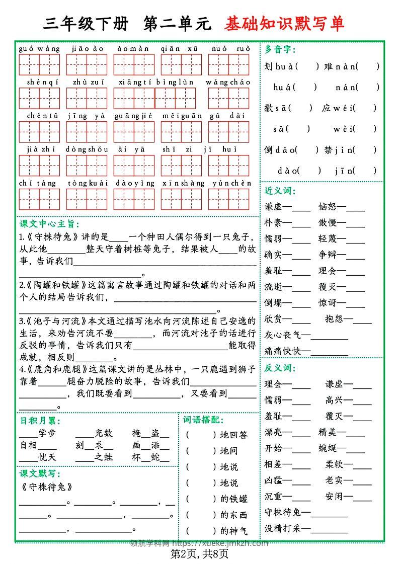 三下语文1-8单元基础知识默写单(含答案16页)青禾老师6个月前发布关注私信036176 ——预览已结束,还剩14页未读——开通会员后可免费下载高清完整文档 三下语文1-8单元基础知识默写单(含答案16页)此内容为付费资源,请付费后查看领航币4.9年度会员免费永久会员免费立即购买您当前未登录!建议登陆后购买,可保存购买订单格式pdf页数16 页大小12.25 MB付费资源© 版权声明 1 本网站名称:领航学科网 2 本站永久网址:https://xueke.jmkzh.com/ 3 本网站的资料都来源于用户投稿,仅供大家学习与参考,如有侵权,请联系站长QQ进行删除处理。 4 本站一切资源不代表本站立场,并不代表本站赞同其观点和对其真实性负责。 5 本站一律禁止以任何方式发布或转载任何违法的相关信息,访客发现请向站长举报! THE END小学语文 喜欢就支持一下吧点赞76 分享QQ空间微博QQ好友海报分享复制链接收藏