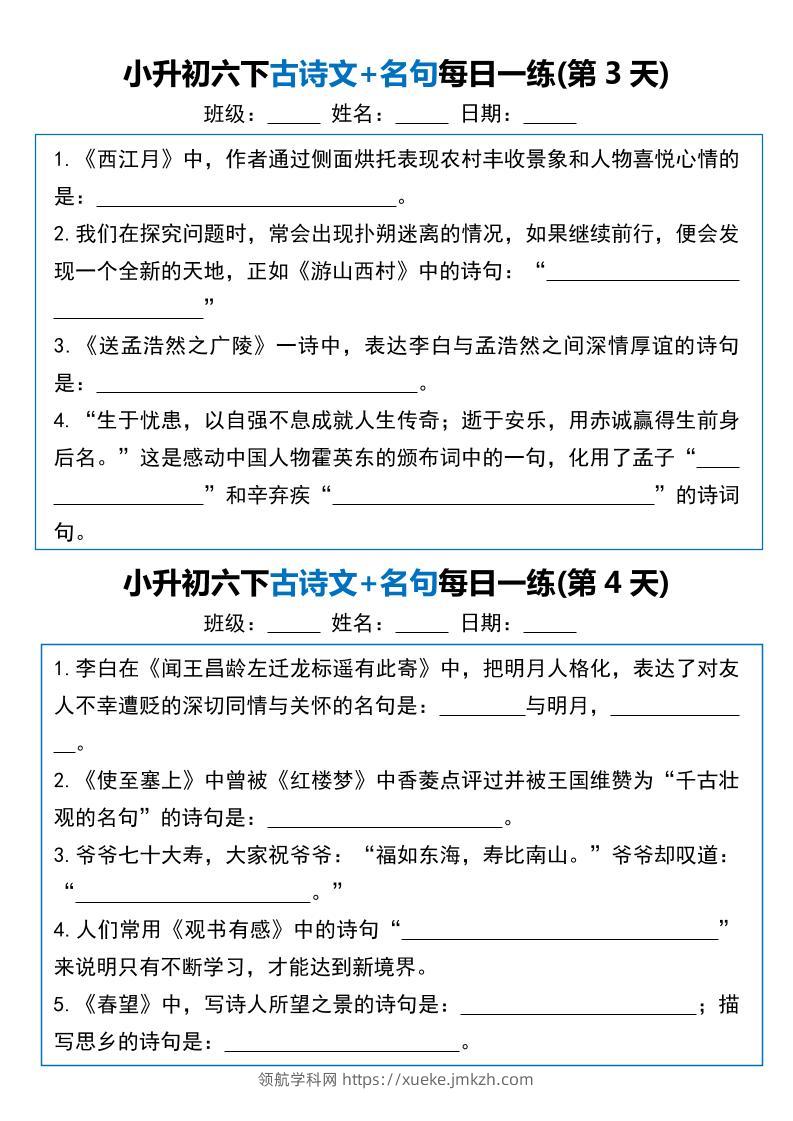 小升初六年级下册语文古诗文+名句每日一练20天青禾老师4个月前发布关注私信073439 ——预览已结束,还剩18页未读——开通会员后可免费下载高清完整文档 小升初六年级下册语文古诗文+名句每日一练20天此内容为付费资源,请付费后查看领航币4.9年度会员免费永久会员免费立即购买您当前未登录!建议登陆后购买,可保存购买订单格式pdf页数20 页大小743.87 KB付费资源© 版权声明 1 本网站名称:领航学科网 2 本站永久网址:https://xueke.jmkzh.com/ 3 本网站的资料都来源于用户投稿,仅供大家学习与参考,如有侵权,请联系站长QQ进行删除处理。 4 本站一切资源不代表本站立场,并不代表本站赞同其观点和对其真实性负责。 5 本站一律禁止以任何方式发布或转载任何违法的相关信息,访客发现请向站长举报! THE END小升初 喜欢就支持一下吧点赞39 分享QQ空间微博QQ好友海报分享复制链接收藏