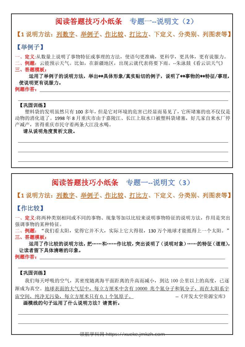 小学语文小升初阅读理解答题技巧每日一练小纸条,涵盖说明文6篇、记叙文19篇、非连续性文本6篇及阅读理解技巧知识点汇总,共28页青禾老师4个月前发布关注私信067383 ——预览已结束,还剩26页未读——开通会员后可免费下载高清完整文档 小学语文小升初阅读理解答题技巧每日一练小纸条,涵盖说明文6篇、记叙文19篇、非连续性文本6篇及阅读理解技巧知识点汇总,共28页此内容为付费资源,请付费后查看领航币4.9年度会员免费永久会员免费立即购买您当前未登录!建议登陆后购买,可保存购买订单格式pdf页数28 页大小846.36 KB付费资源© 版权声明 1 本网站名称:领航学科网 2 本站永久网址:https://xueke.jmkzh.com/ 3 本网站的资料都来源于用户投稿,仅供大家学习与参考,如有侵权,请联系站长QQ进行删除处理。 4 本站一切资源不代表本站立场,并不代表本站赞同其观点和对其真实性负责。 5 本站一律禁止以任何方式发布或转载任何违法的相关信息,访客发现请向站长举报! THE END小升初 喜欢就支持一下吧点赞83 分享QQ空间微博QQ好友海报分享复制链接收藏