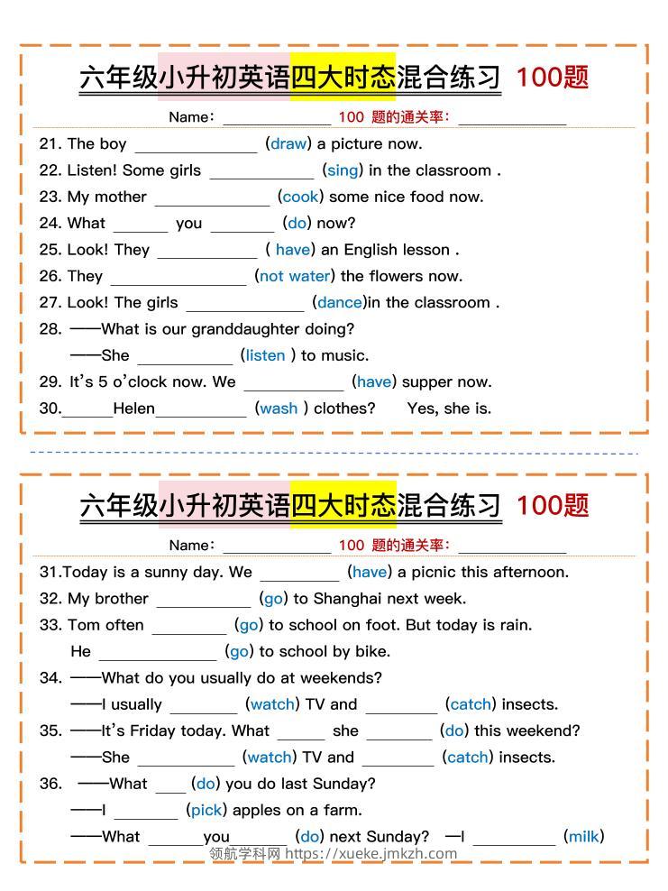 六年级小升初英语四大时态混合练习青禾老师4个月前发布关注私信07779 ——预览已结束,还剩8页未读——开通会员后可免费下载高清完整文档 六年级小升初英语四大时态混合练习此内容为付费资源,请付费后查看领航币4.9年度会员免费永久会员免费立即购买您当前未登录!建议登陆后购买,可保存购买订单格式pdf页数10 页大小320.84 KB付费资源© 版权声明 1 本网站名称:领航学科网 2 本站永久网址:https://xueke.jmkzh.com/ 3 本网站的资料都来源于用户投稿,仅供大家学习与参考,如有侵权,请联系站长QQ进行删除处理。 4 本站一切资源不代表本站立场,并不代表本站赞同其观点和对其真实性负责。 5 本站一律禁止以任何方式发布或转载任何违法的相关信息,访客发现请向站长举报! THE END小升初 喜欢就支持一下吧点赞79 分享QQ空间微博QQ好友海报分享复制链接收藏