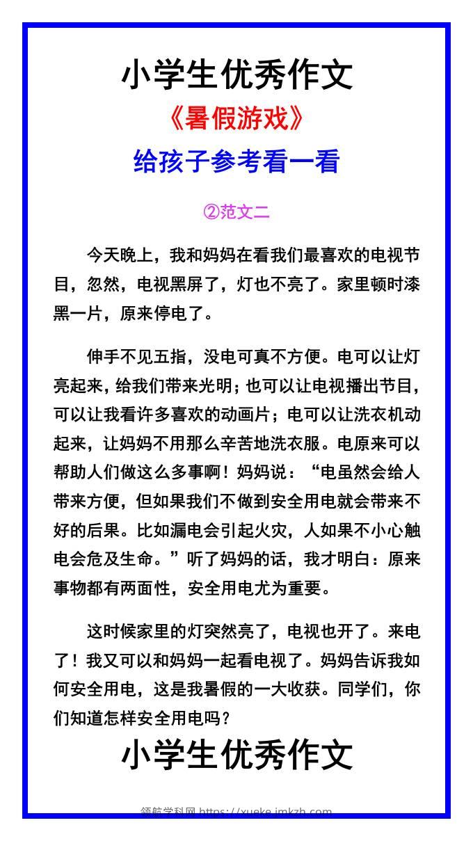 小学生优秀作文《暑假游戏》范文汇总-小升初语文青禾老师2个月前发布关注私信092547 ——预览已结束,还剩1页未读——开通会员后可免费下载高清完整文档 小学生优秀作文《暑假游戏》范文汇总-小升初语文此内容为付费资源,请付费后查看领航币4.9年度会员免费永久会员免费立即购买您当前未登录!建议登陆后购买,可保存购买订单格式docx页数3 页大小105.11 KB付费资源© 版权声明 1 本网站名称:领航学科网 2 本站永久网址:https://xueke.jmkzh.com/ 3 本网站的资料都来源于用户投稿,仅供大家学习与参考,如有侵权,请联系站长QQ进行删除处理。 4 本站一切资源不代表本站立场,并不代表本站赞同其观点和对其真实性负责。 5 本站一律禁止以任何方式发布或转载任何违法的相关信息,访客发现请向站长举报! THE END小升初 喜欢就支持一下吧点赞47 分享QQ空间微博QQ好友海报分享复制链接收藏