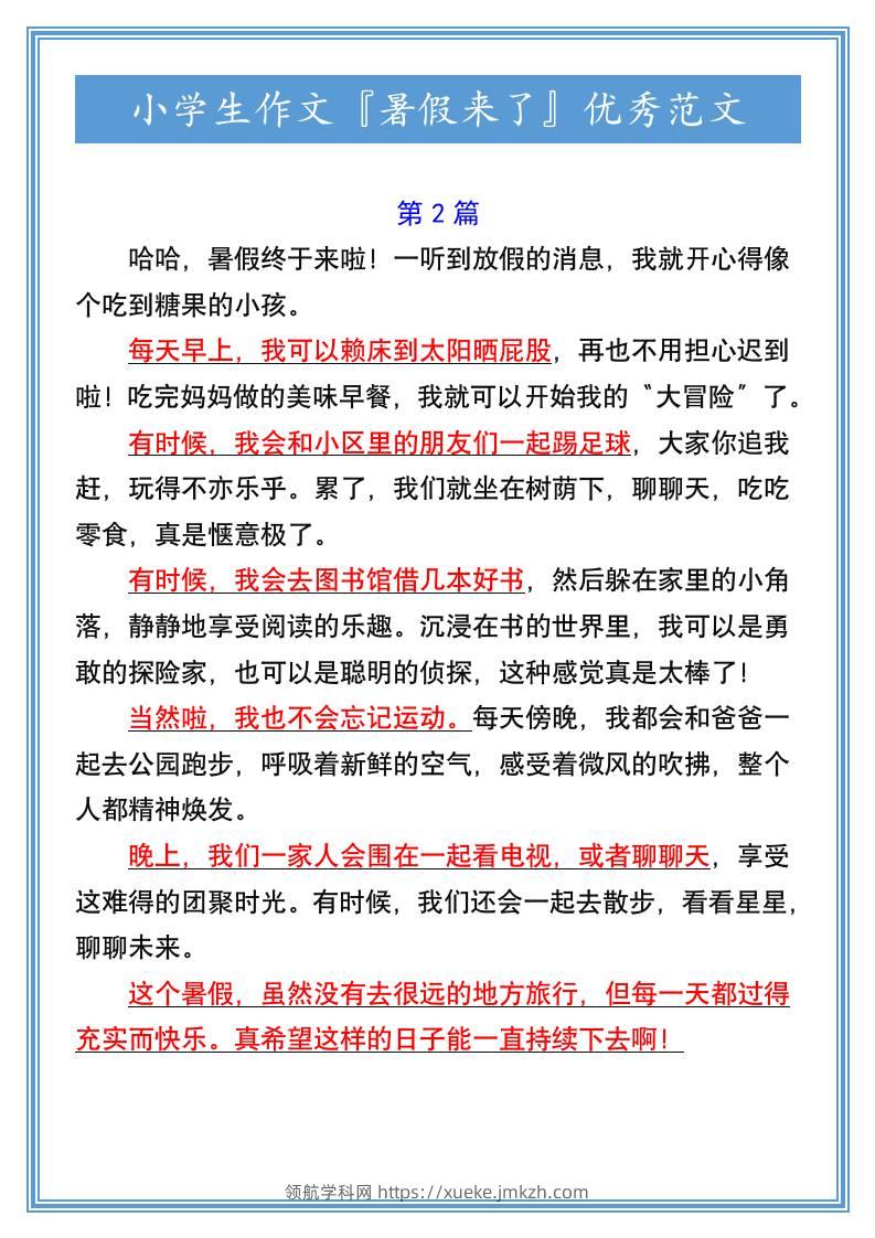 小学生作文『暑假来了』优秀范文-小升初语文青禾老师2个月前发布关注私信09059 ——预览已结束,还剩2页未读——开通会员后可免费下载高清完整文档 小学生作文『暑假来了』优秀范文-小升初语文此内容为付费资源,请付费后查看领航币4.9年度会员免费永久会员免费立即购买您当前未登录!建议登陆后购买,可保存购买订单格式docx页数4 页大小35.68 KB付费资源© 版权声明 1 本网站名称:领航学科网 2 本站永久网址:https://xueke.jmkzh.com/ 3 本网站的资料都来源于用户投稿,仅供大家学习与参考,如有侵权,请联系站长QQ进行删除处理。 4 本站一切资源不代表本站立场,并不代表本站赞同其观点和对其真实性负责。 5 本站一律禁止以任何方式发布或转载任何违法的相关信息,访客发现请向站长举报! THE END小升初 喜欢就支持一下吧点赞9 分享QQ空间微博QQ好友海报分享复制链接收藏