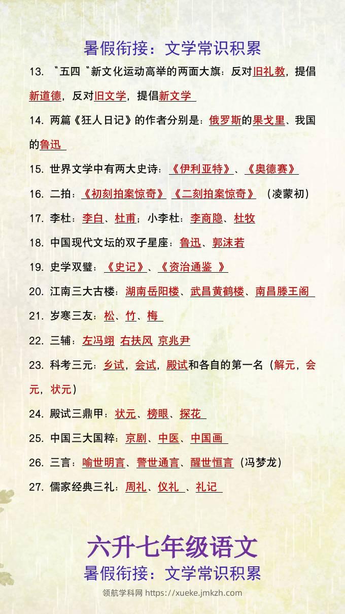 六升七年级语文暑假衔接文学常识积累-小升初语文青禾老师2个月前发布关注私信023428 ——预览已结束,还剩1页未读——开通会员后可免费下载高清完整文档 六升七年级语文暑假衔接文学常识积累-小升初语文此内容为付费资源,请付费后查看领航币4.9年度会员免费永久会员免费立即购买您当前未登录!建议登陆后购买,可保存购买订单格式docx页数3 页大小2.27 MB付费资源© 版权声明 1 本网站名称:领航学科网 2 本站永久网址:https://xueke.jmkzh.com/ 3 本网站的资料都来源于用户投稿,仅供大家学习与参考,如有侵权,请联系站长QQ进行删除处理。 4 本站一切资源不代表本站立场,并不代表本站赞同其观点和对其真实性负责。 5 本站一律禁止以任何方式发布或转载任何违法的相关信息,访客发现请向站长举报! THE END小升初 喜欢就支持一下吧点赞28 分享QQ空间微博QQ好友海报分享复制链接收藏
