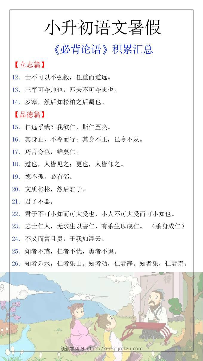 小升初语文暑假知识积累必背论语汇总-小升初语文青禾老师3个月前发布关注私信0808100 ——预览已结束,还剩1页未读——开通会员后可免费下载高清完整文档 小升初语文暑假知识积累必背论语汇总-小升初语文此内容为付费资源,请付费后查看领航币4.9年度会员免费永久会员免费立即购买您当前未登录!建议登陆后购买,可保存购买订单格式docx页数3 页大小247.81 KB付费资源© 版权声明 1 本网站名称:领航学科网 2 本站永久网址:https://xueke.jmkzh.com/ 3 本网站的资料都来源于用户投稿,仅供大家学习与参考,如有侵权,请联系站长QQ进行删除处理。 4 本站一切资源不代表本站立场,并不代表本站赞同其观点和对其真实性负责。 5 本站一律禁止以任何方式发布或转载任何违法的相关信息,访客发现请向站长举报! THE END小升初 喜欢就支持一下吧点赞100 分享QQ空间微博QQ好友海报分享复制链接收藏
