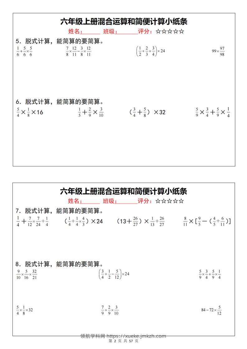 六上数学混合运算和简便计算小纸条(通用)青禾老师4天前发布关注私信057767 ——预览已结束,还剩55页未读——开通会员后可免费下载高清完整文档 六上数学混合运算和简便计算小纸条(通用)此内容为付费资源,请付费后查看领航币4.9年度会员免费永久会员免费立即购买您当前未登录!建议登陆后购买,可保存购买订单格式pdf页数57 页大小9.47 MB付费资源© 版权声明 1 本网站名称:领航学科网 2 本站永久网址:https://xueke.jmkzh.com/ 3 本网站的资料都来源于用户投稿,仅供大家学习与参考,如有侵权,请联系站长QQ进行删除处理。 4 本站一切资源不代表本站立场,并不代表本站赞同其观点和对其真实性负责。 5 本站一律禁止以任何方式发布或转载任何违法的相关信息,访客发现请向站长举报! THE END小学数学 喜欢就支持一下吧点赞67 分享QQ空间微博QQ好友海报分享复制链接收藏