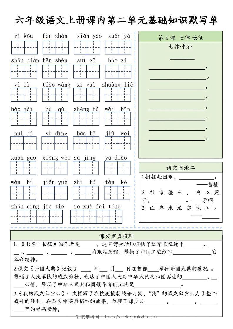 六上语文基础知识默写单(1-8单元)含答案16页青禾老师1个月前发布关注私信047899 ——预览已结束,还剩14页未读——开通会员后可免费下载高清完整文档 六上语文基础知识默写单(1-8单元)含答案16页此内容为付费资源,请付费后查看领航币4.9年度会员免费永久会员免费立即购买您当前未登录!建议登陆后购买,可保存购买订单格式pdf页数16 页大小7.69 MB付费资源© 版权声明 1 本网站名称:领航学科网 2 本站永久网址:https://xueke.jmkzh.com/ 3 本网站的资料都来源于用户投稿,仅供大家学习与参考,如有侵权,请联系站长QQ进行删除处理。 4 本站一切资源不代表本站立场,并不代表本站赞同其观点和对其真实性负责。 5 本站一律禁止以任何方式发布或转载任何违法的相关信息,访客发现请向站长举报! THE END小学语文 喜欢就支持一下吧点赞99 分享QQ空间微博QQ好友海报分享复制链接收藏