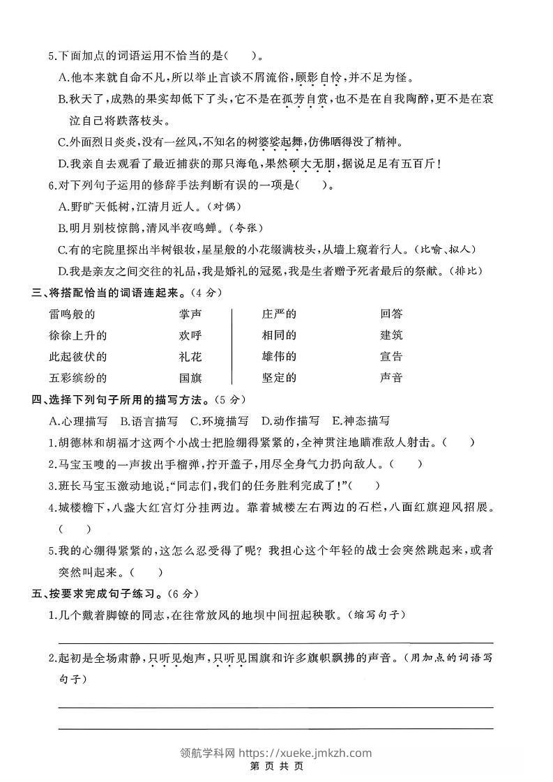 六年级上语文第一次月考测试卷8页青禾老师6小时前发布关注私信027645 ——预览已结束,还剩6页未读——开通会员后可免费下载高清完整文档 六年级上语文第一次月考测试卷8页此内容为付费资源,请付费后查看领航币4.9年度会员免费永久会员免费立即购买您当前未登录!建议登陆后购买,可保存购买订单格式pdf页数8 页大小8.36 MB付费资源© 版权声明 1 本网站名称:领航学科网 2 本站永久网址:https://xueke.jmkzh.com/ 3 本网站的资料都来源于用户投稿,仅供大家学习与参考,如有侵权,请联系站长QQ进行删除处理。 4 本站一切资源不代表本站立场,并不代表本站赞同其观点和对其真实性负责。 5 本站一律禁止以任何方式发布或转载任何违法的相关信息,访客发现请向站长举报! THE END小学语文 喜欢就支持一下吧点赞45 分享QQ空间微博QQ好友海报分享复制链接收藏
