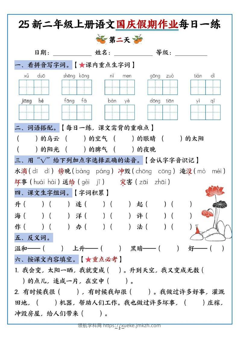 25新二上语文国庆假期作业每日一练(含答案16页)青禾老师28天前发布关注私信034898 ——预览已结束,还剩14页未读——开通会员后可免费下载高清完整文档 25新二上语文国庆假期作业每日一练(含答案16页)此内容为付费资源,请付费后查看领航币4.9年度会员免费永久会员免费立即购买您当前未登录!建议登陆后购买,可保存购买订单格式pdf页数16 页大小12.97 MB付费资源© 版权声明 1 本网站名称:领航学科网 2 本站永久网址:https://xueke.jmkzh.com/ 3 本网站的资料都来源于用户投稿,仅供大家学习与参考,如有侵权,请联系站长QQ进行删除处理。 4 本站一切资源不代表本站立场,并不代表本站赞同其观点和对其真实性负责。 5 本站一律禁止以任何方式发布或转载任何违法的相关信息,访客发现请向站长举报! THE END小学语文 喜欢就支持一下吧点赞98 分享QQ空间微博QQ好友海报分享复制链接收藏