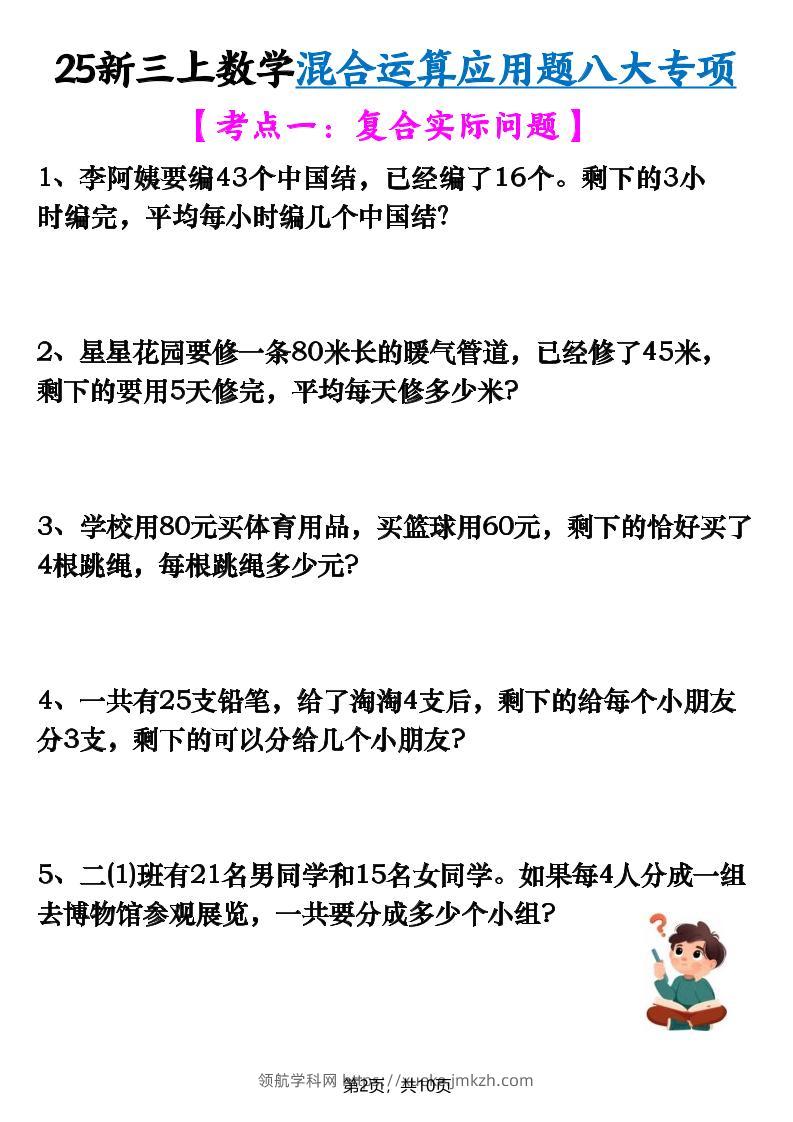 25新三上数学混合运算应用题八大专项(含答案10页)青禾老师26天前发布关注私信063020 ——预览已结束,还剩8页未读——开通会员后可免费下载高清完整文档 25新三上数学混合运算应用题八大专项(含答案10页)此内容为付费资源,请付费后查看领航币4.9年度会员免费永久会员免费立即购买您当前未登录!建议登陆后购买,可保存购买订单格式pdf页数10 页大小701.05 KB付费资源© 版权声明 1 本网站名称:领航学科网 2 本站永久网址:https://xueke.jmkzh.com/ 3 本网站的资料都来源于用户投稿,仅供大家学习与参考,如有侵权,请联系站长QQ进行删除处理。 4 本站一切资源不代表本站立场,并不代表本站赞同其观点和对其真实性负责。 5 本站一律禁止以任何方式发布或转载任何违法的相关信息,访客发现请向站长举报! THE END小学数学 喜欢就支持一下吧点赞20 分享QQ空间微博QQ好友海报分享复制链接收藏