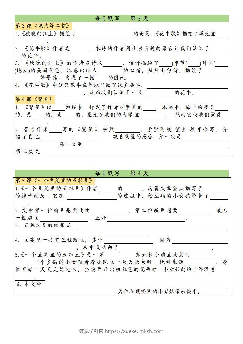 四上语文课文内容填空每日默写单青禾老师18天前发布关注私信0103156 ——预览已结束,还剩22页未读——开通会员后可免费下载高清完整文档 四上语文课文内容填空每日默写单此内容为付费资源,请付费后查看领航币4.9年度会员免费永久会员免费立即购买您当前未登录!建议登陆后购买,可保存购买订单格式pdf页数24 页大小2.05 MB付费资源© 版权声明 1 本网站名称:领航学科网 2 本站永久网址:https://xueke.jmkzh.com/ 3 本网站的资料都来源于用户投稿,仅供大家学习与参考,如有侵权,请联系站长QQ进行删除处理。 4 本站一切资源不代表本站立场,并不代表本站赞同其观点和对其真实性负责。 5 本站一律禁止以任何方式发布或转载任何违法的相关信息,访客发现请向站长举报! THE END小学语文 喜欢就支持一下吧点赞56 分享QQ空间微博QQ好友海报分享复制链接收藏