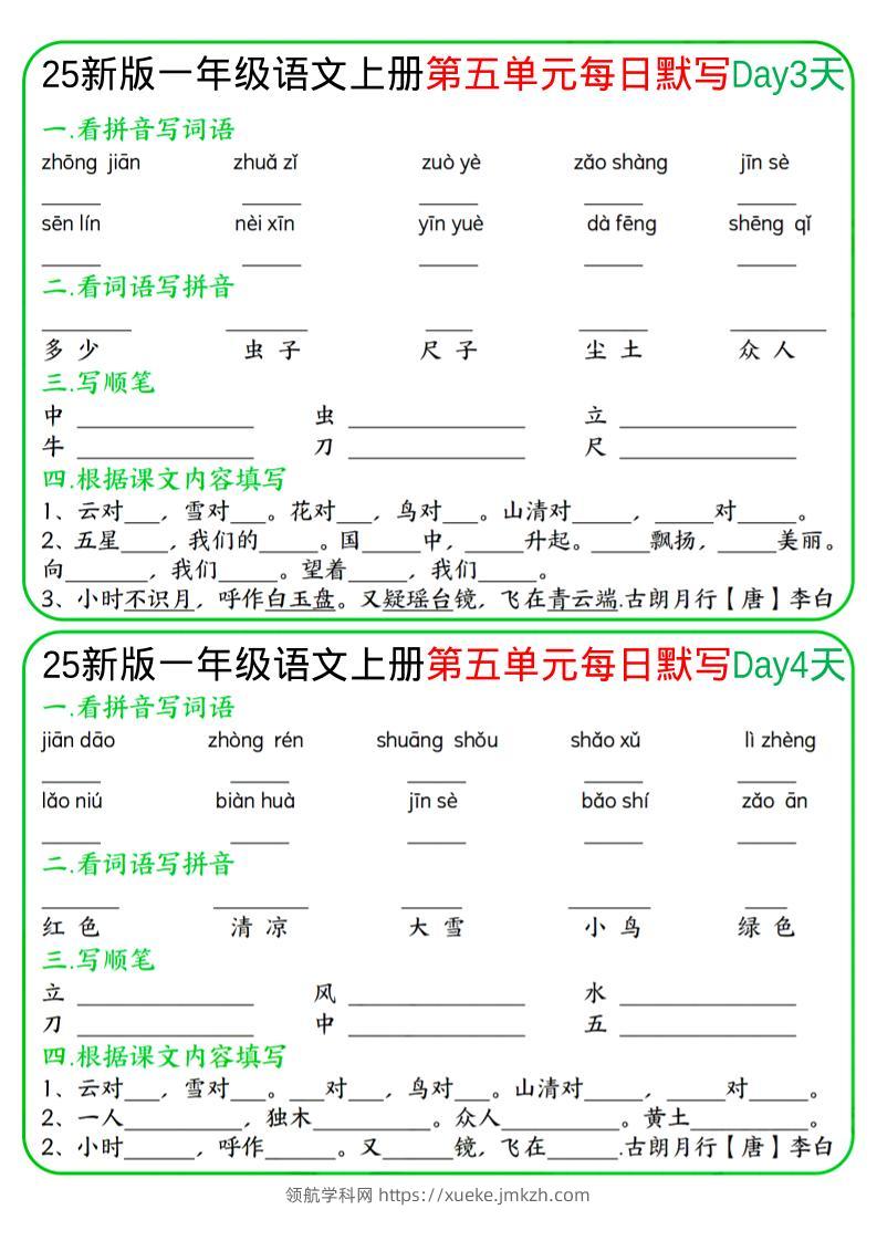 一年级上语文5-8单元每日默写青禾老师13天前发布关注私信07688 ——预览已结束,还剩6页未读——开通会员后可免费下载高清完整文档 一年级上语文5-8单元每日默写此内容为付费资源,请付费后查看领航币4.9年度会员免费永久会员免费立即购买您当前未登录!建议登陆后购买,可保存购买订单格式pdf页数8 页大小3.38 MB付费资源© 版权声明 1 本网站名称:领航学科网 2 本站永久网址:https://xueke.jmkzh.com/ 3 本网站的资料都来源于用户投稿,仅供大家学习与参考,如有侵权,请联系站长QQ进行删除处理。 4 本站一切资源不代表本站立场,并不代表本站赞同其观点和对其真实性负责。 5 本站一律禁止以任何方式发布或转载任何违法的相关信息,访客发现请向站长举报! THE END小学语文 喜欢就支持一下吧点赞88 分享QQ空间微博QQ好友海报分享复制链接收藏
