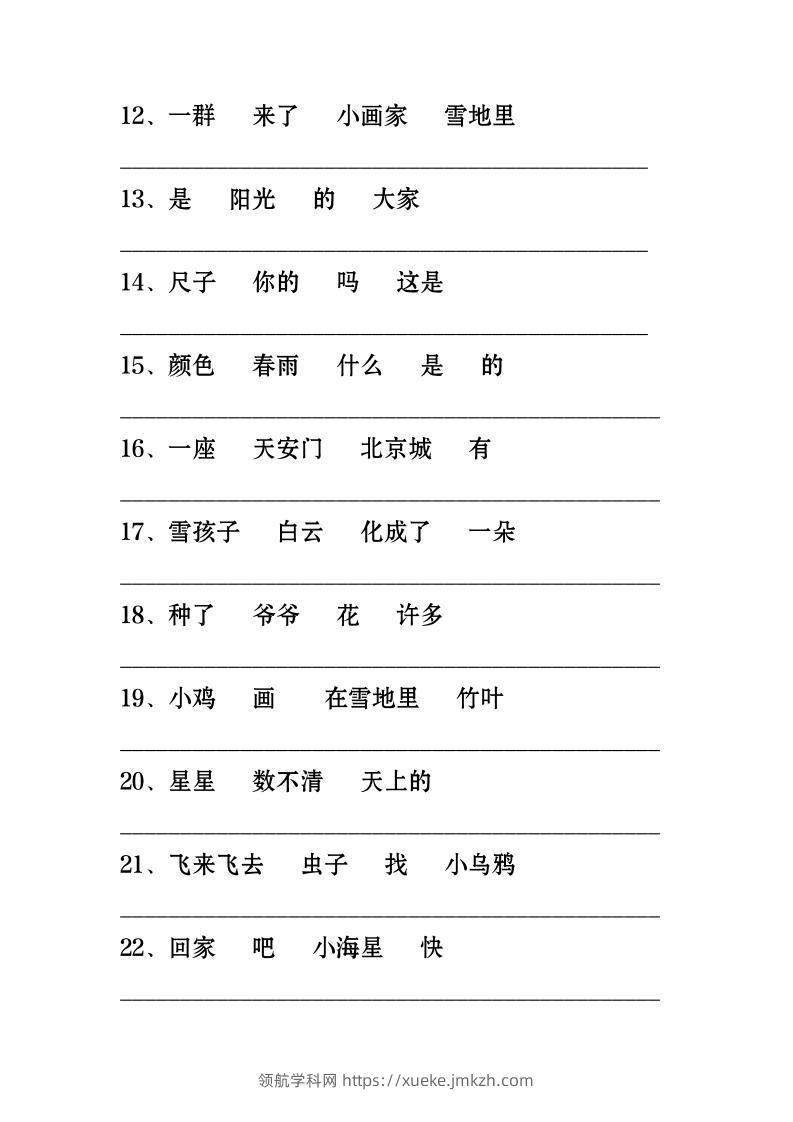 一年级上语文-连词成句专项练习26道青禾老师12天前发布关注私信063023 ——预览已结束,还剩1页未读——开通会员后可免费下载高清完整文档 一年级上语文-连词成句专项练习26道此内容为付费资源,请付费后查看领航币4.9年度会员免费永久会员免费立即购买您当前未登录!建议登陆后购买,可保存购买订单格式pdf页数3 页大小153.10 KB付费资源© 版权声明 1 本网站名称:领航学科网 2 本站永久网址:https://xueke.jmkzh.com/ 3 本网站的资料都来源于用户投稿,仅供大家学习与参考,如有侵权,请联系站长QQ进行删除处理。 4 本站一切资源不代表本站立场,并不代表本站赞同其观点和对其真实性负责。 5 本站一律禁止以任何方式发布或转载任何违法的相关信息,访客发现请向站长举报! THE END小学语文 喜欢就支持一下吧点赞23 分享QQ空间微博QQ好友海报分享复制链接收藏