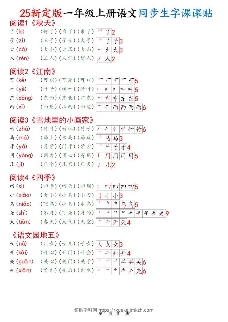 一年级上语文25最新版同步生字课课贴青禾老师9天前发布关注私信083680 ——预览已结束,还剩3页未读——开通会员后可免费下载高清完整文档 一年级上语文25最新版同步生字课课贴此内容为付费资源,请付费后查看领航币4.9年度会员免费永久会员免费立即购买您当前未登录!建议登陆后购买,可保存购买订单格式pdf页数5 页大小390.63 KB付费资源© 版权声明 1 本网站名称:领航学科网 2 本站永久网址:https://xueke.jmkzh.com/ 3 本网站的资料都来源于用户投稿,仅供大家学习与参考,如有侵权,请联系站长QQ进行删除处理。 4 本站一切资源不代表本站立场,并不代表本站赞同其观点和对其真实性负责。 5 本站一律禁止以任何方式发布或转载任何违法的相关信息,访客发现请向站长举报! THE END小学语文 喜欢就支持一下吧点赞80 分享QQ空间微博QQ好友海报分享复制链接收藏