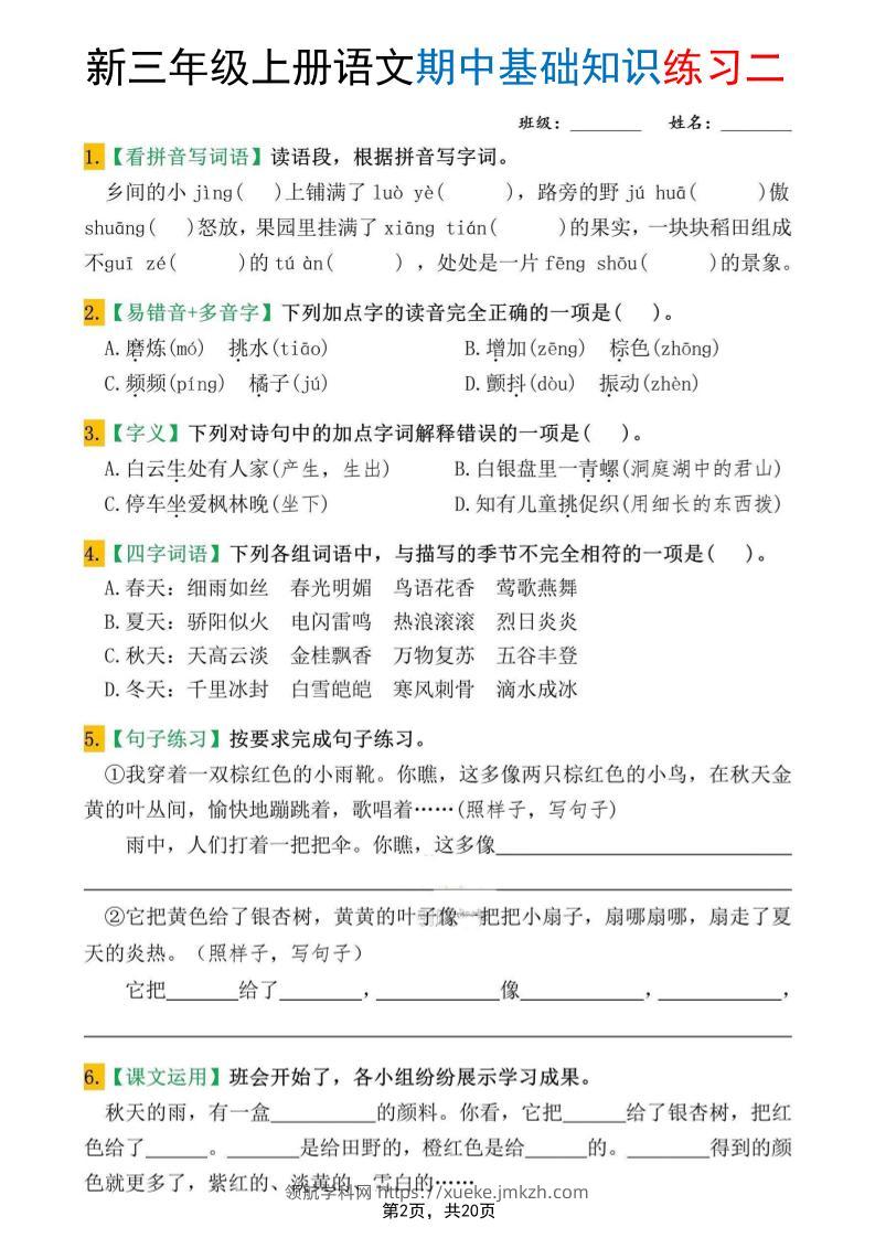 新三上语文期中基础知识练习10套(含答案20页)青禾老师昨天发布关注私信034771 ——预览已结束,还剩18页未读——开通会员后可免费下载高清完整文档 新三上语文期中基础知识练习10套(含答案20页)此内容为付费资源,请付费后查看领航币4.9年度会员免费永久会员免费立即购买您当前未登录!建议登陆后购买,可保存购买订单格式pdf页数20 页大小10.19 MB付费资源© 版权声明 1 本网站名称:领航学科网 2 本站永久网址:https://xueke.jmkzh.com/ 3 本网站的资料都来源于用户投稿,仅供大家学习与参考,如有侵权,请联系站长QQ进行删除处理。 4 本站一切资源不代表本站立场,并不代表本站赞同其观点和对其真实性负责。 5 本站一律禁止以任何方式发布或转载任何违法的相关信息,访客发现请向站长举报! THE END小学语文 喜欢就支持一下吧点赞71 分享QQ空间微博QQ好友海报分享复制链接收藏