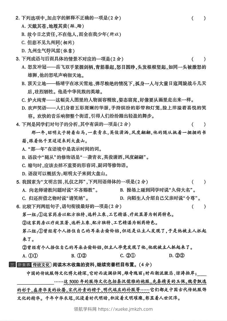 五上语文期中拔尖检测卷2(含答案7页)青禾老师7小时前发布关注私信061272 ——预览已结束,还剩5页未读——开通会员后可免费下载高清完整文档 五上语文期中拔尖检测卷2(含答案7页)此内容为付费资源,请付费后查看领航币4.9年度会员免费永久会员免费立即购买您当前未登录!建议登陆后购买,可保存购买订单格式pdf页数7 页大小3.73 MB付费资源© 版权声明 1 本网站名称:领航学科网 2 本站永久网址:https://xueke.jmkzh.com/ 3 本网站的资料都来源于用户投稿,仅供大家学习与参考,如有侵权,请联系站长QQ进行删除处理。 4 本站一切资源不代表本站立场,并不代表本站赞同其观点和对其真实性负责。 5 本站一律禁止以任何方式发布或转载任何违法的相关信息,访客发现请向站长举报! THE END小学语文 喜欢就支持一下吧点赞72 分享QQ空间微博QQ好友海报分享复制链接收藏