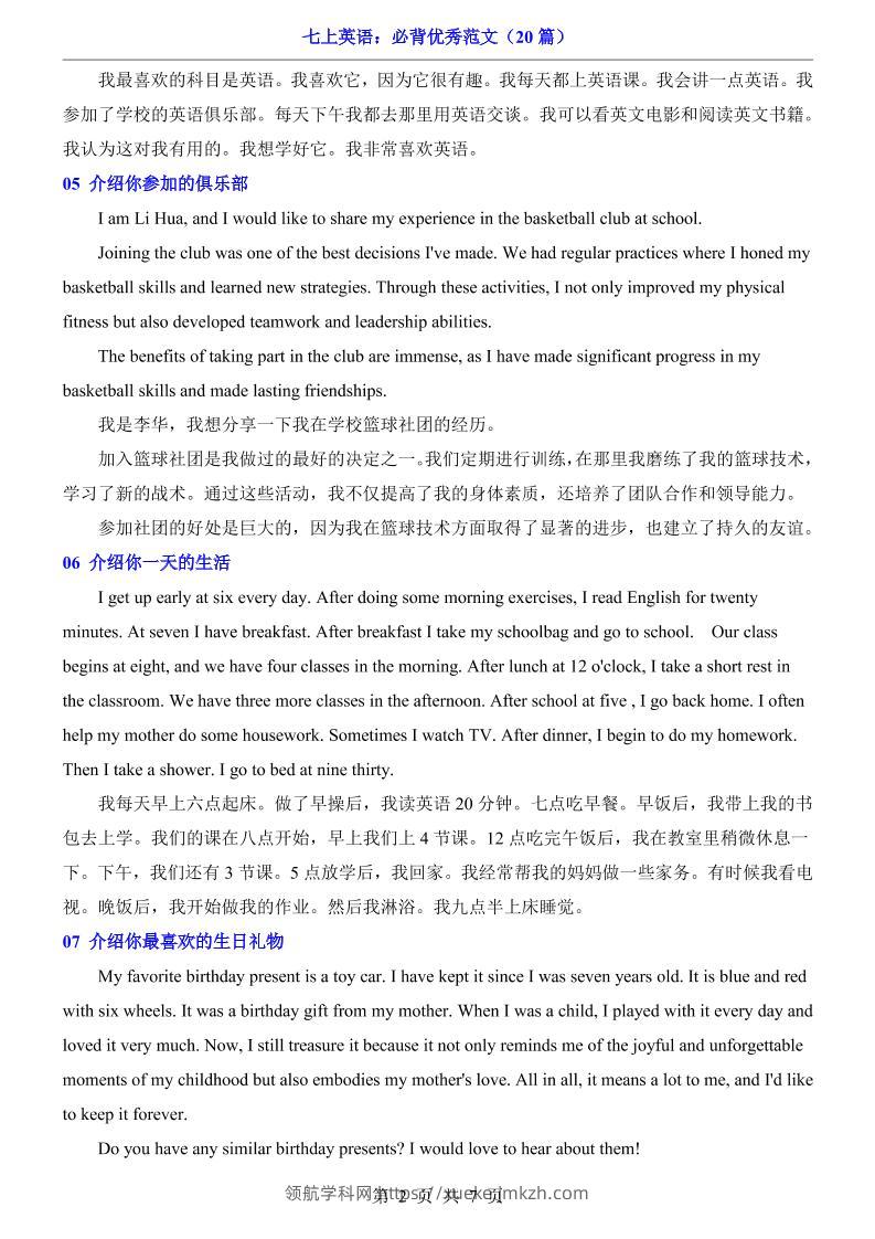 七年级上英语必背优秀范文(20篇)青禾老师14小时前发布关注私信094035 ——预览已结束,还剩5页未读——开通会员后可免费下载高清完整文档 七年级上英语必背优秀范文(20篇)此内容为付费资源,请付费后查看领航币4.9年度会员免费永久会员免费立即购买您当前未登录!建议登陆后购买,可保存购买订单格式pdf页数7 页大小208.74 KB付费资源© 版权声明 1 本网站名称:领航学科网 2 本站永久网址:https://xueke.jmkzh.com/ 3 本网站的资料都来源于用户投稿,仅供大家学习与参考,如有侵权,请联系站长QQ进行删除处理。 4 本站一切资源不代表本站立场,并不代表本站赞同其观点和对其真实性负责。 5 本站一律禁止以任何方式发布或转载任何违法的相关信息,访客发现请向站长举报! THE END初中英语 喜欢就支持一下吧点赞35 分享QQ空间微博QQ好友海报分享复制链接收藏