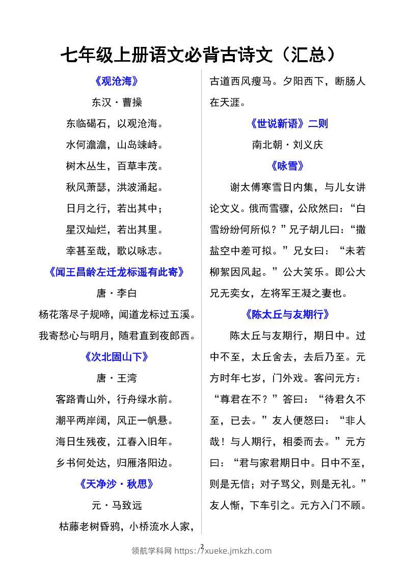 七年级上语文必背古诗文汇总青禾老师4小时前发布关注私信01338 ——预览已结束,还剩3页未读——开通会员后可免费下载高清完整文档 七年级上语文必背古诗文汇总此内容为付费资源,请付费后查看领航币4.9年度会员免费永久会员免费立即购买您当前未登录!建议登陆后购买,可保存购买订单格式pdf页数5 页大小257.85 KB付费资源© 版权声明 1 本网站名称:领航学科网 2 本站永久网址:https://xueke.jmkzh.com/ 3 本网站的资料都来源于用户投稿,仅供大家学习与参考,如有侵权,请联系站长QQ进行删除处理。 4 本站一切资源不代表本站立场,并不代表本站赞同其观点和对其真实性负责。 5 本站一律禁止以任何方式发布或转载任何违法的相关信息,访客发现请向站长举报! THE END初中语文 喜欢就支持一下吧点赞8 分享QQ空间微博QQ好友海报分享复制链接收藏