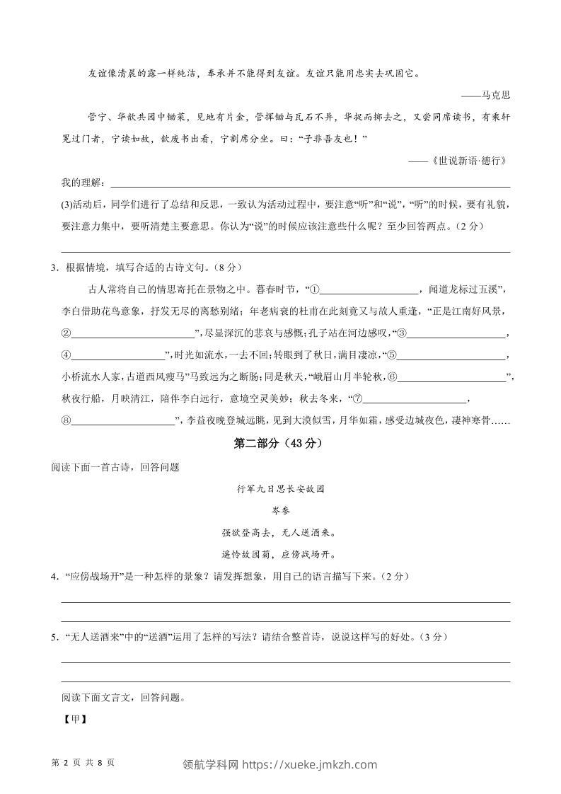 七年级上语文期中模拟卷2青禾老师15小时前发布关注私信029841 ——预览已结束,还剩20页未读——开通会员后可免费下载高清完整文档 七年级上语文期中模拟卷2此内容为付费资源,请付费后查看领航币4.9年度会员免费永久会员免费立即购买您当前未登录!建议登陆后购买,可保存购买订单格式pdf页数22 页大小1.03 MB付费资源© 版权声明 1 本网站名称:领航学科网 2 本站永久网址:https://xueke.jmkzh.com/ 3 本网站的资料都来源于用户投稿,仅供大家学习与参考,如有侵权,请联系站长QQ进行删除处理。 4 本站一切资源不代表本站立场,并不代表本站赞同其观点和对其真实性负责。 5 本站一律禁止以任何方式发布或转载任何违法的相关信息,访客发现请向站长举报! THE END初中语文 喜欢就支持一下吧点赞41 分享QQ空间微博QQ好友海报分享复制链接收藏