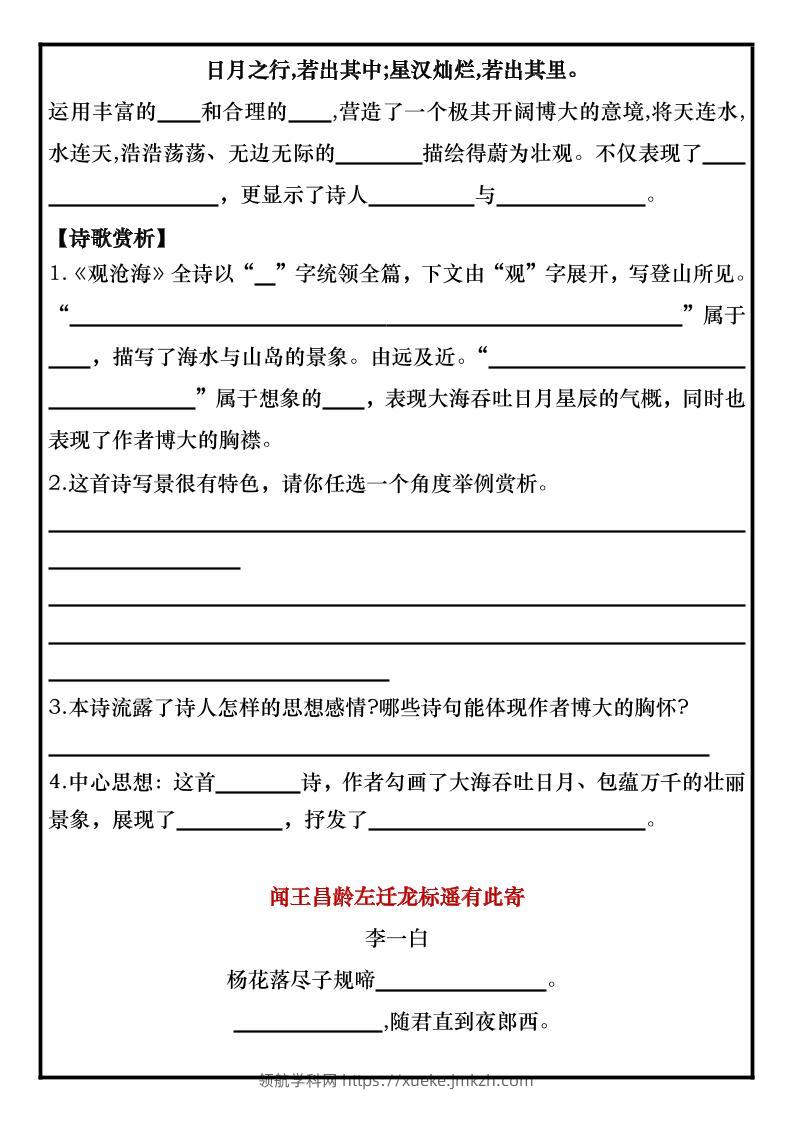 七年级上语文必考《古代诗歌四首》过关训练青禾老师13天前发布关注私信092455 ——预览已结束,还剩12页未读——开通会员后可免费下载高清完整文档 七年级上语文必考《古代诗歌四首》过关训练此内容为付费资源,请付费后查看领航币4.9年度会员免费永久会员免费立即购买您当前未登录!建议登陆后购买,可保存购买订单格式pdf页数14 页大小307.92 KB付费资源© 版权声明 1 本网站名称:领航学科网 2 本站永久网址:https://xueke.jmkzh.com/ 3 本网站的资料都来源于用户投稿,仅供大家学习与参考,如有侵权,请联系站长QQ进行删除处理。 4 本站一切资源不代表本站立场,并不代表本站赞同其观点和对其真实性负责。 5 本站一律禁止以任何方式发布或转载任何违法的相关信息,访客发现请向站长举报! THE END初中语文 喜欢就支持一下吧点赞55 分享QQ空间微博QQ好友海报分享复制链接收藏