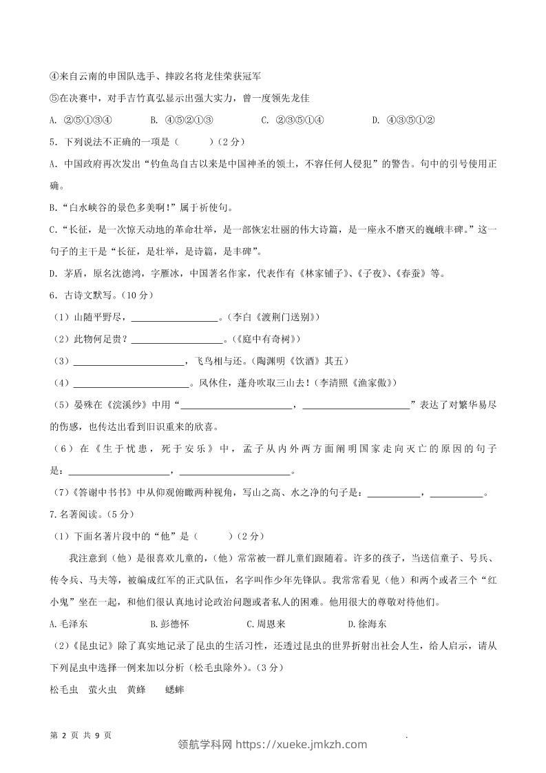 八年级上语文期末模拟卷1青禾老师10天前发布关注私信064447 ——预览已结束,还剩26页未读——开通会员后可免费下载高清完整文档 八年级上语文期末模拟卷1此内容为付费资源,请付费后查看领航币4.9年度会员免费永久会员免费立即购买您当前未登录!建议登陆后购买,可保存购买订单格式pdf页数28 页大小1.94 MB付费资源© 版权声明 1 本网站名称:领航学科网 2 本站永久网址:https://xueke.jmkzh.com/ 3 本网站的资料都来源于用户投稿,仅供大家学习与参考,如有侵权,请联系站长QQ进行删除处理。 4 本站一切资源不代表本站立场,并不代表本站赞同其观点和对其真实性负责。 5 本站一律禁止以任何方式发布或转载任何违法的相关信息,访客发现请向站长举报! THE END初中语文 喜欢就支持一下吧点赞47 分享QQ空间微博QQ好友海报分享复制链接收藏