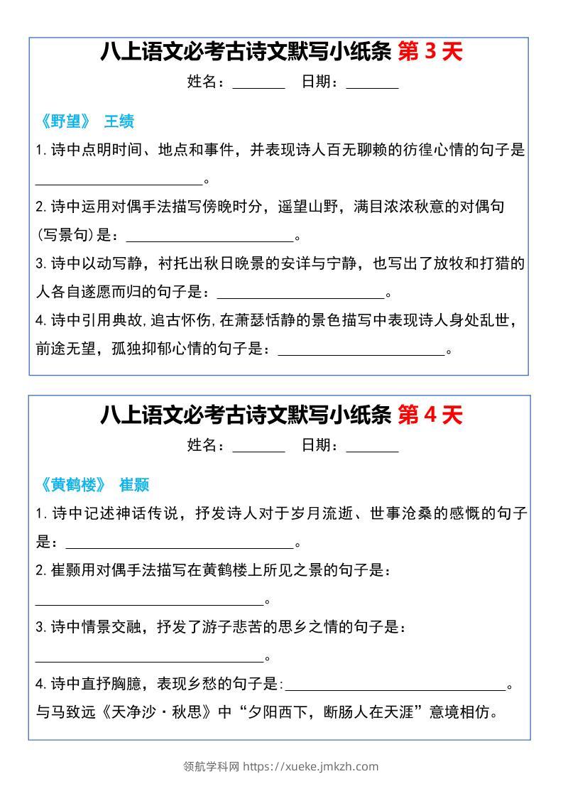 八年级上语文必考古诗文默写小纸条20天青禾老师8天前发布关注私信023198 ——预览已结束,还剩18页未读——开通会员后可免费下载高清完整文档 八年级上语文必考古诗文默写小纸条20天此内容为付费资源,请付费后查看领航币4.9年度会员免费永久会员免费立即购买您当前未登录!建议登陆后购买,可保存购买订单格式pdf页数20 页大小470.41 KB付费资源© 版权声明 1 本网站名称:领航学科网 2 本站永久网址:https://xueke.jmkzh.com/ 3 本网站的资料都来源于用户投稿,仅供大家学习与参考,如有侵权,请联系站长QQ进行删除处理。 4 本站一切资源不代表本站立场,并不代表本站赞同其观点和对其真实性负责。 5 本站一律禁止以任何方式发布或转载任何违法的相关信息,访客发现请向站长举报! THE END初中语文 喜欢就支持一下吧点赞98 分享QQ空间微博QQ好友海报分享复制链接收藏
