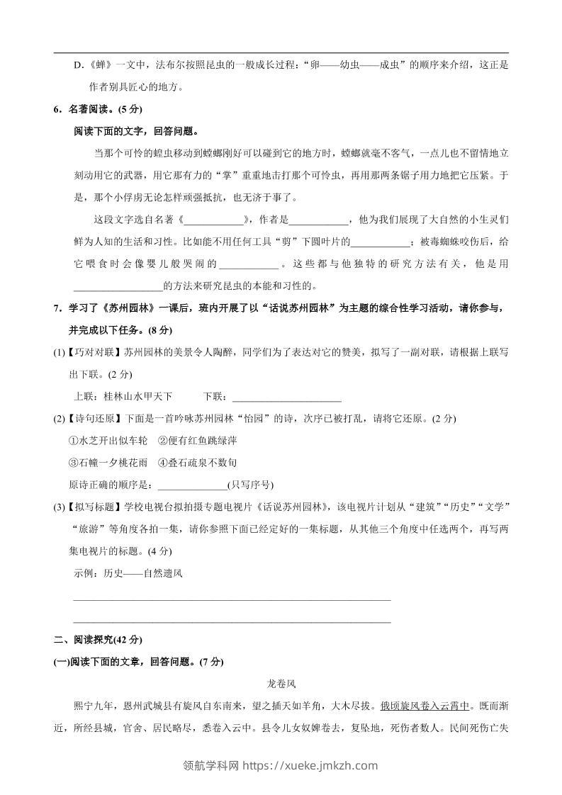 八年级上语文第5单元测试卷青禾老师8天前发布关注私信029530 ——预览已结束,还剩6页未读——开通会员后可免费下载高清完整文档 八年级上语文第5单元测试卷此内容为付费资源,请付费后查看领航币4.9年度会员免费永久会员免费立即购买您当前未登录!建议登陆后购买,可保存购买订单格式pdf页数8 页大小344.88 KB付费资源© 版权声明 1 本网站名称:领航学科网 2 本站永久网址:https://xueke.jmkzh.com/ 3 本网站的资料都来源于用户投稿,仅供大家学习与参考,如有侵权,请联系站长QQ进行删除处理。 4 本站一切资源不代表本站立场,并不代表本站赞同其观点和对其真实性负责。 5 本站一律禁止以任何方式发布或转载任何违法的相关信息,访客发现请向站长举报! THE END初中语文 喜欢就支持一下吧点赞30 分享QQ空间微博QQ好友海报分享复制链接收藏